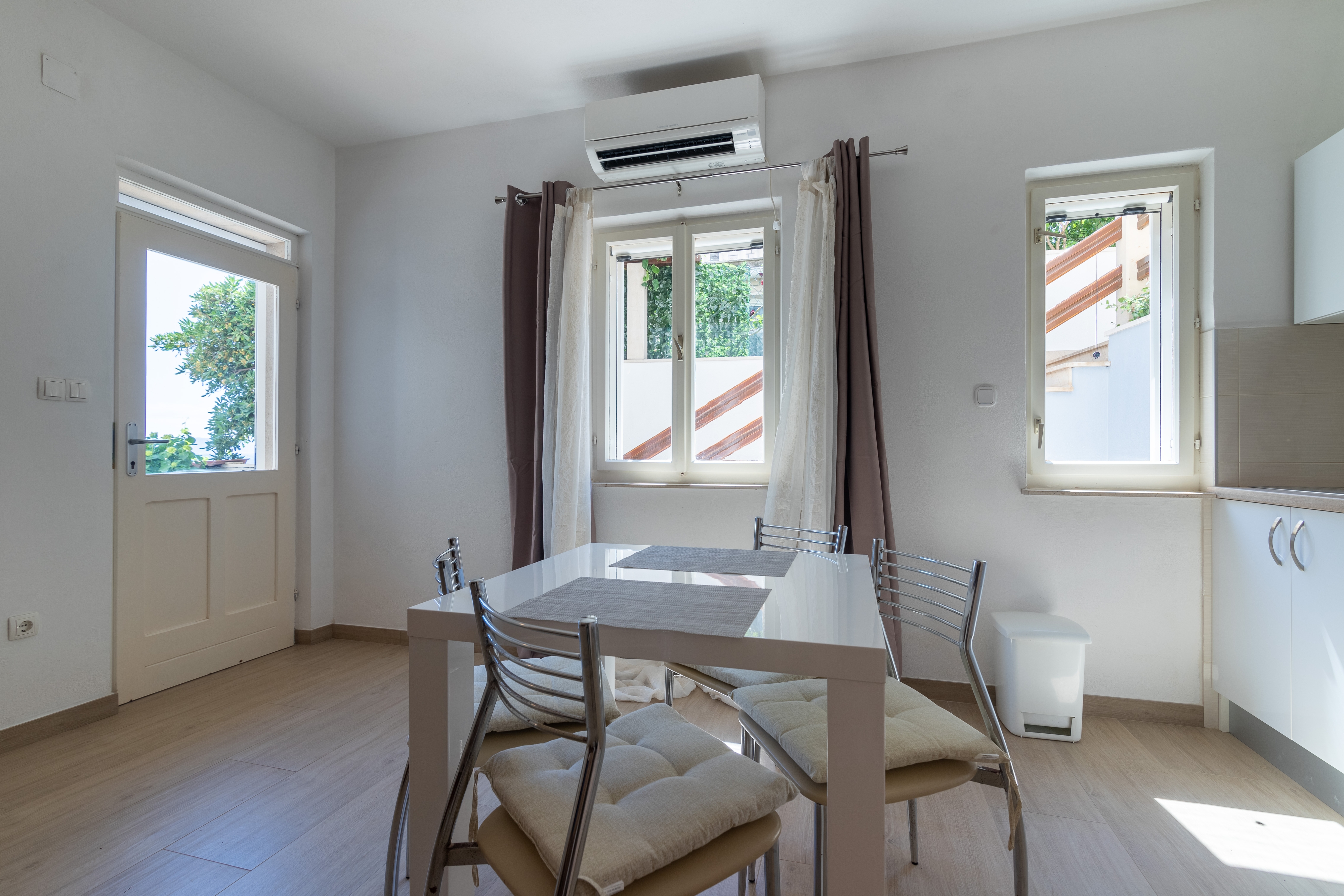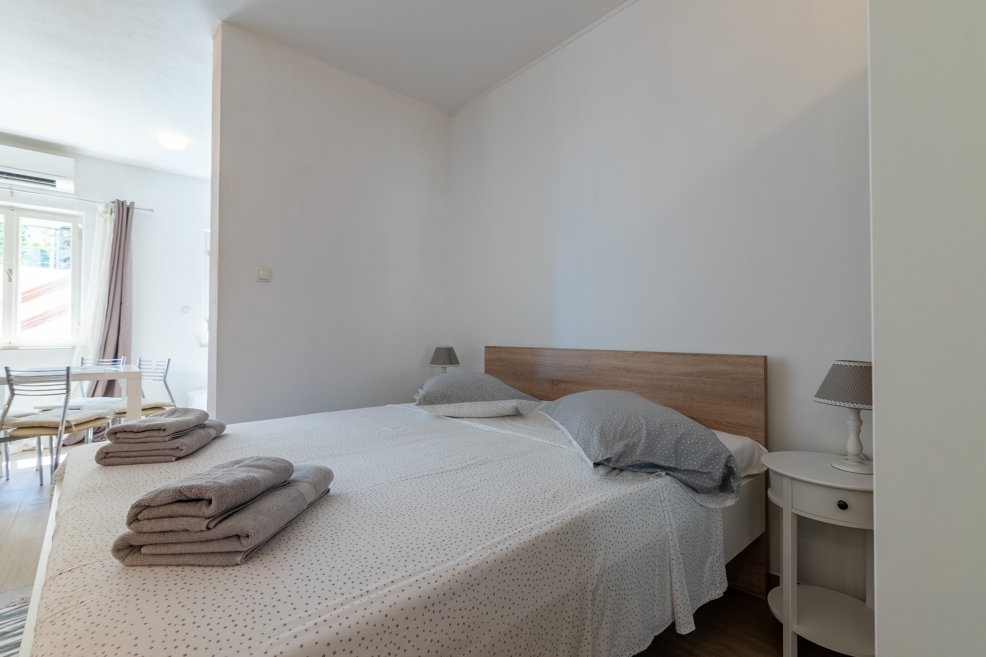 Studio może przyjąć 3 gości. Łóżka znajdują się w sypialniach, których jest 1, na powierzchni 33m2. Goście mają dostęp do tarasu, by korzystać z ciepłych, letnich wieczorów. Z apartamentu typu studio roztacza się widok na morze. Możliwość przygotowywania posiłków poprzez korzystanie ze wspólnego grilla. WLICZONE W CENĘ: taksa pobytowa, sprzątanie końcowe, klimatyzacja, centralne ogrzewanie, parking, garaż, internet, miejsce do cumowania łodzi, żelazko, deska do prasowania, suszarka do włosów, parasol, leżaki. NIEOBOWIĄZKOWE KOSZTY DODATKOWE: pranie bielizny (3,00 € pranie). Dostępność dodatkowych usług w rezerwowanym terminie oraz ich cenę (jeśli nie jest podana) należy sprawdzić wcześniej. Za dodatowe usługi, które nie zostały uwzględnione w kalkulacji ceny, płaci się bezpośrednio właścicielowi obiektu, pod warunkiem śe gość korzysta z tych usług.