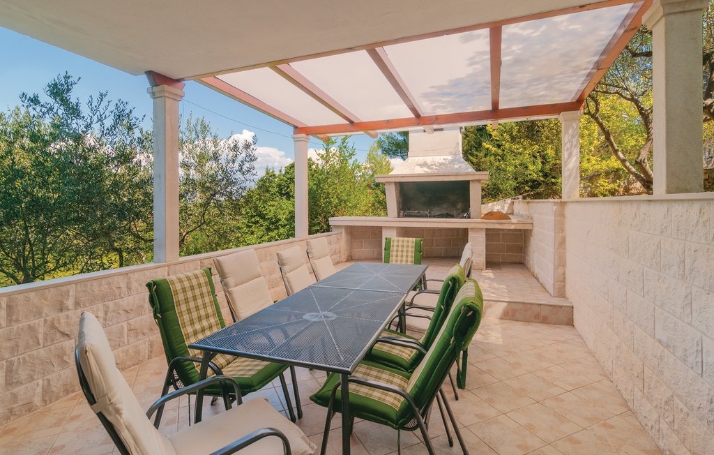 Dom może przyjąć 11 gości. Łóżka znajdują się w sypialniach, których jest 5, oraz w pokoju dziennym, na powierzchni 196m2. Goście mają dostęp do tarasu, by korzystać z ciepłych, letnich wieczorów. Z domu wakacyjnego roztacza się widok na morze. Grill jest dostępny tylko do użytku gości z tej kwatery. W trakcie swojego pobytu goście mogą zrelakswować się w prywatnym basenie. Pomieszczenia rezerwowanej kwatery nie są połączone w jedną całość. WLICZONE W CENĘ: taksa pobytowa, sprzątanie końcowe, klimatyzacja, basen, parking, internet, łóżeczko dziecięce, żelazko, deska do prasowania, suszarka do włosów. Dostępność dodatkowych usług w rezerwowanym terminie oraz ich cenę (jeśli nie jest podana) należy sprawdzić wcześniej. Za dodatowe usługi, które nie zostały uwzględnione w kalkulacji ceny, płaci się bezpośrednio właścicielowi obiektu, pod warunkiem śe gość korzysta z tych usług.