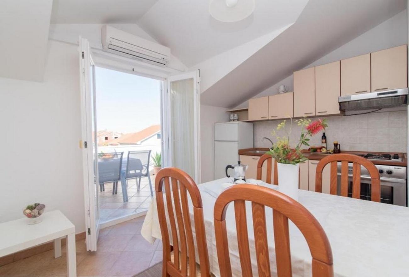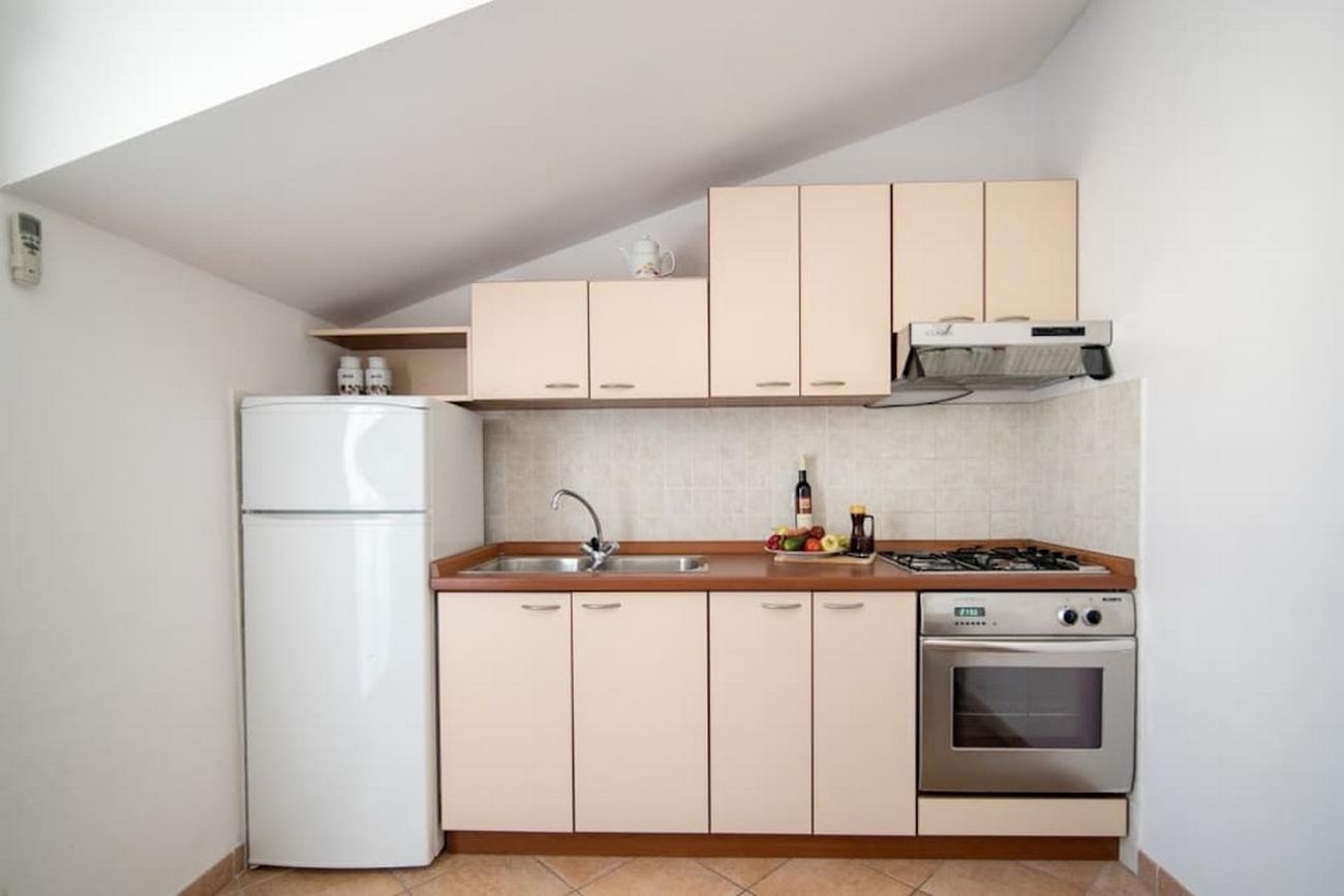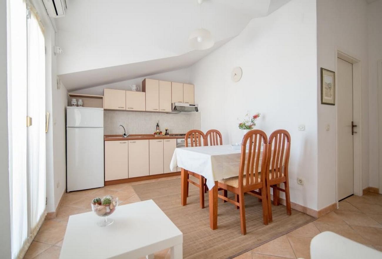 Apartament może przyjąć 4 gości. Łóżka znajdują się w sypialniach, których jest 2, na powierzchni 51m2. Goście mają dostęp do tarasu, by korzystać z ciepłych, letnich wieczorów. Z apartamentu roztacza się widok na morze. Możliwość przygotowywania posiłków poprzez korzystanie ze wspólnego grilla. W trakcie swojego pobytu goście mogą korzystać ze wspólnego basenu. W kwaterze dozwolony jest pobyt zwierzęcia domowego, za dopłatą. WLICZONE W CENĘ: taksa pobytowa, sprzątanie końcowe, klimatyzacja, basen, parking, internet, pranie bielizny, łóżeczko dziecięce, żelazko, suszarka do włosów. OBOWIĄZKOWE KOSZTY DODATKOWE: dopłata za krótki termin (procent dopłaty w zalezności od liczby noclegów: 30% - 1, 20% - 2, 10% - 3). NIEOBOWIĄZKOWE KOSZTY DODATKOWE: zwierzęta domowe (5,00 € za nocleg). Dostępność dodatkowych usług w rezerwowanym terminie oraz ich cenę (jeśli nie jest podana) należy sprawdzić wcześniej. Za dodatowe usługi, które nie zostały uwzględnione w kalkulacji ceny, płaci się bezpośrednio właścicielowi obiektu, pod warunkiem śe gość korzysta z tych usług. Zniżki od ceny podstawowej: bezpłatny dzień 28=25 (na pobyt na 28 dni lub więcej otrzymują Państwo 3 dni gratis na pobyt do 31.12.2026).