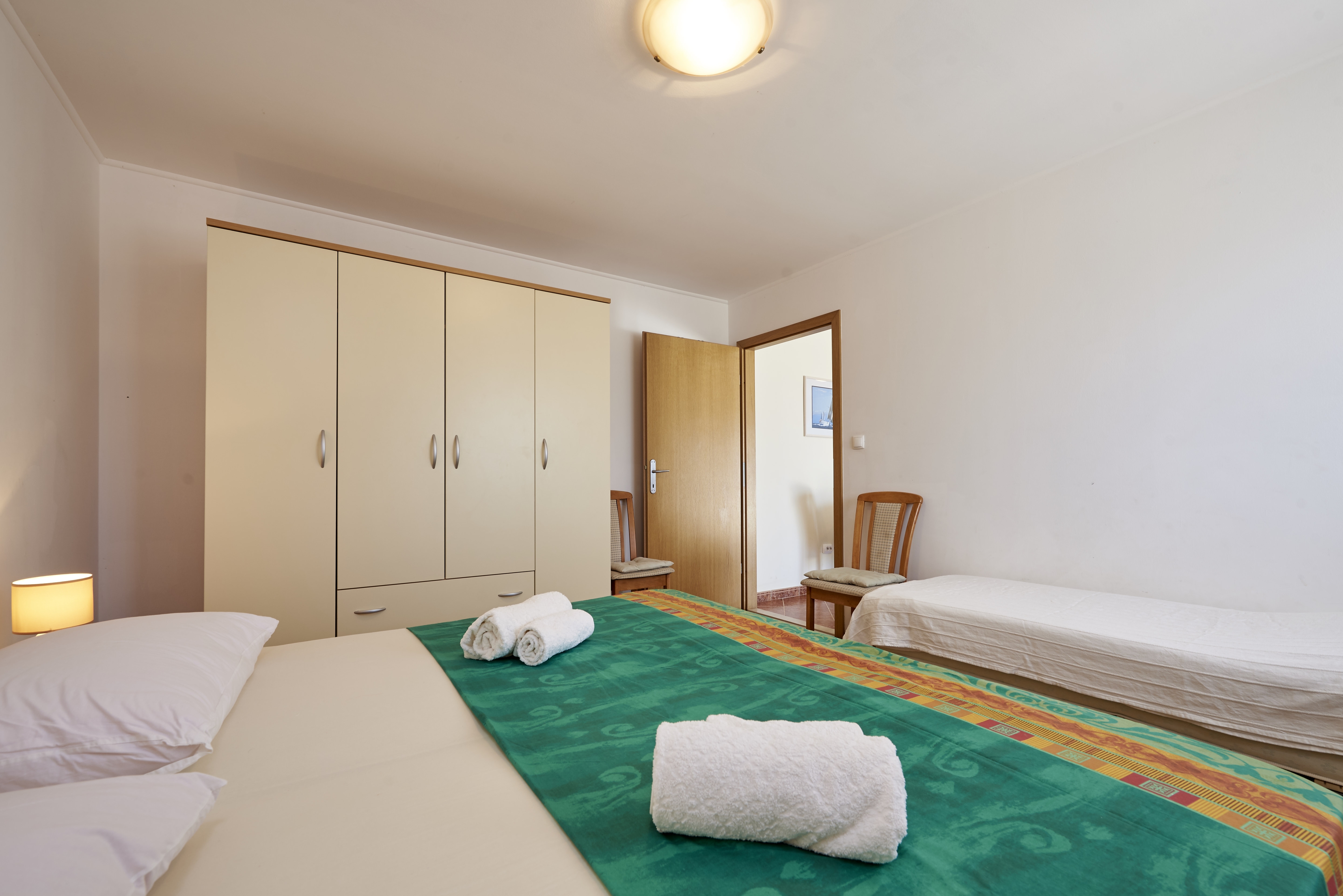 Apartament może przyjąć 4 gości. Łóżka znajdują się w sypialniach, których jest 1, oraz w pokoju dziennym, na powierzchni 40m2. Goście mają dostęp do tarasu, by korzystać z ciepłych, letnich wieczorów. Z apartamentu roztacza się widok na morze. Możliwość przygotowywania posiłków poprzez korzystanie ze wspólnego grilla. WLICZONE W CENĘ: taksa pobytowa, sprzątanie końcowe, klimatyzacja, parking, internet, dostawka. Dostępność dodatkowych usług w rezerwowanym terminie oraz ich cenę (jeśli nie jest podana) należy sprawdzić wcześniej. Za dodatowe usługi, które nie zostały uwzględnione w kalkulacji ceny, płaci się bezpośrednio właścicielowi obiektu, pod warunkiem śe gość korzysta z tych usług.