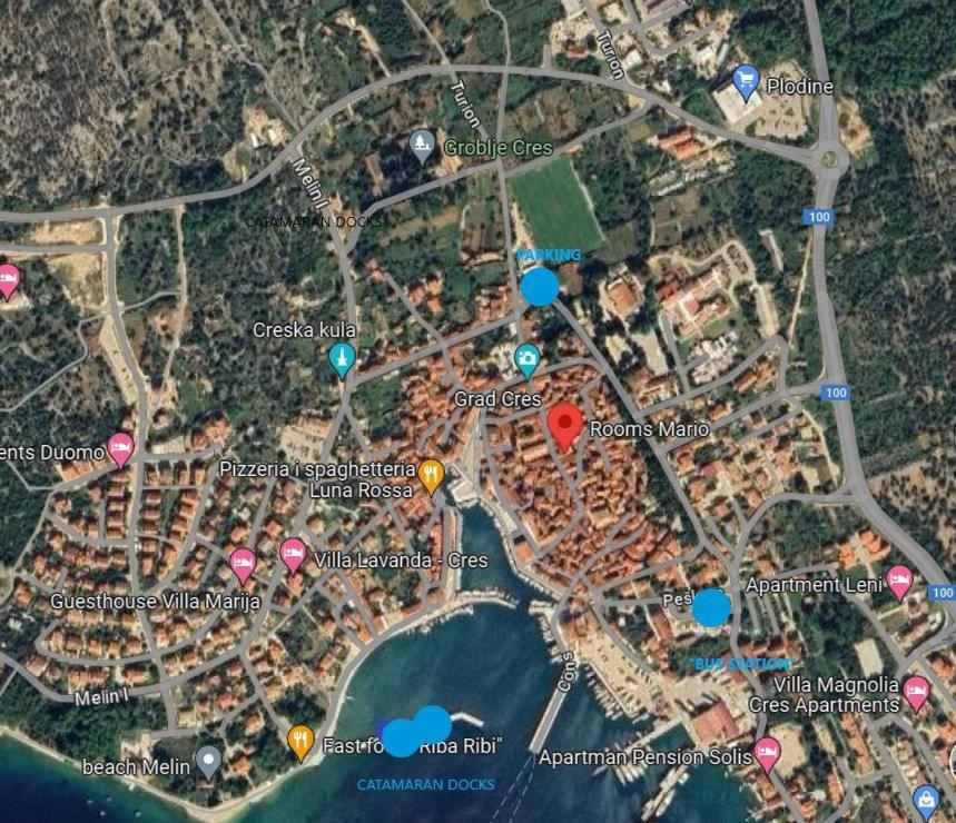 Obiekt Rooms Mario usytuowany jest w miejscowości Cres i oferuje pokoje z klimatyzacją. Odległość ważnych miejsc od obiektu: Plaża Melin – 700 m. Na miejscu dostępny jest bezpłatny prywatny parking. Obiekt organizuje też płatny transfer lotniskowy.