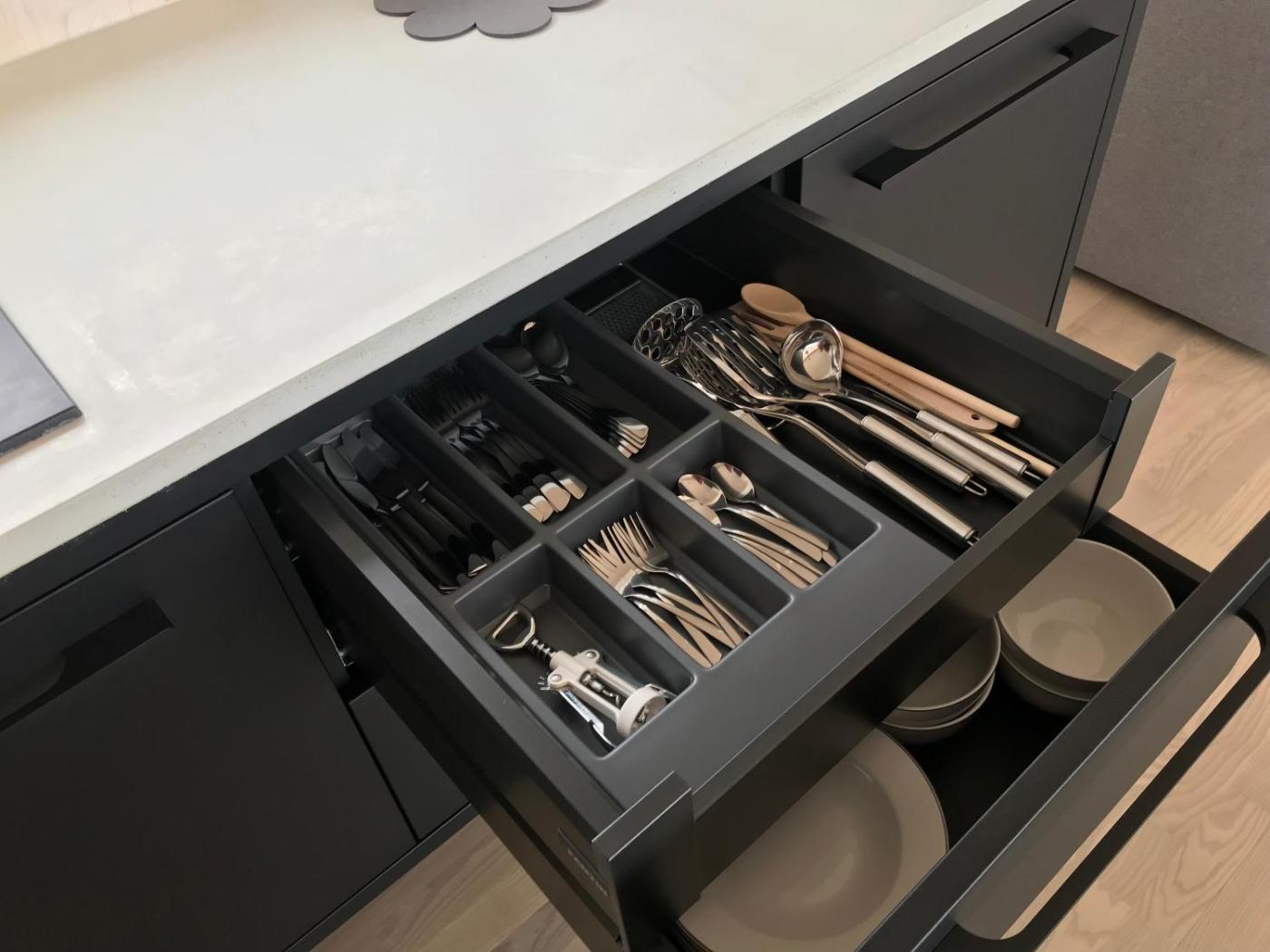 Wszystkie opcje zakwaterowania mają taras, skąd roztacza się widok na morze. W każdej opcji znajduje się też kuchnia z lodówką i zmywarką oraz prywatna łazienka z prysznicem. Wyposażenie obejmuje również płytę kuchenną, toster, ekspres do kawy i czajnik.