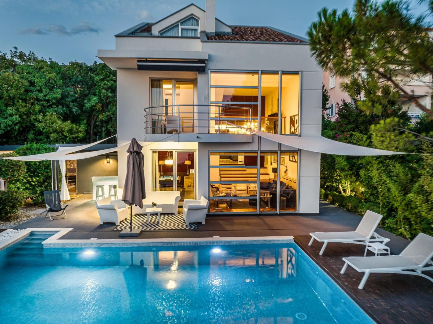 Willa z prywatnym basenem. The pool with a view and fireplace are the standout features of this villa. This spacious villa includes 2 living rooms, 4 separate bedrooms and 3 bathrooms with a bath and free toiletries. Guests will find a stovetop, a refrigerator, a dishwasher and kitchenware in the fully equipped kitchen. The villa also features a barbecue. The air-conditioned villa offers a flat-screen TV with cable channels, a washing machine, a minibar, a tea and coffee maker as well as sea views. The unit has 5 beds. Willa - 8 osobowy. Powierzchnia pokoju ok.: 230 mkw.