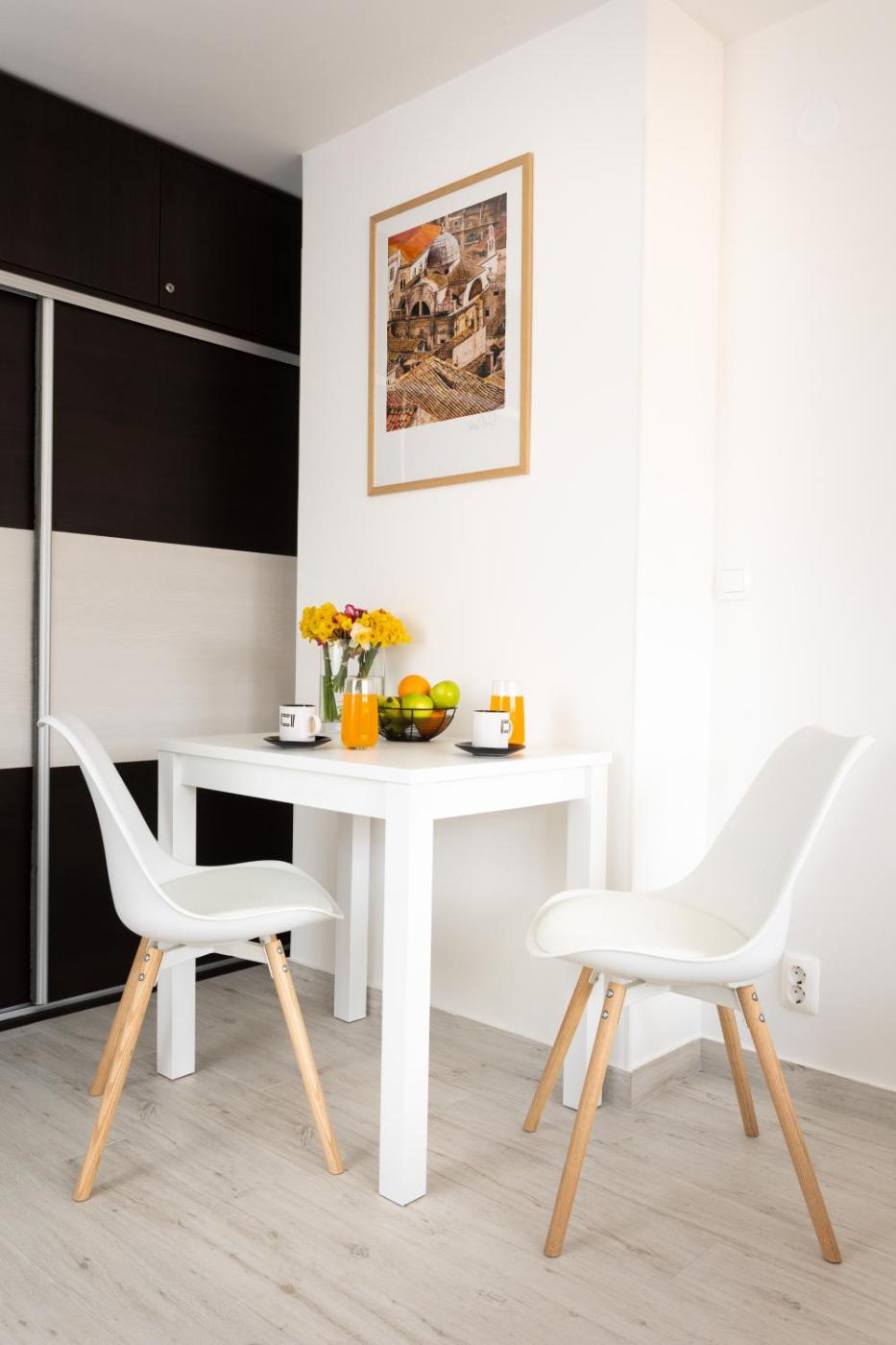 W apartamencie zapewniono sypialnię (1), łazienkę (1), pościel, ręczniki, jadalnię oraz kuchnię z pełnym wyposażeniem. Do dyspozycji Gości jest także telewizor z płaskim ekranem oraz taras z widokiem na miasto.