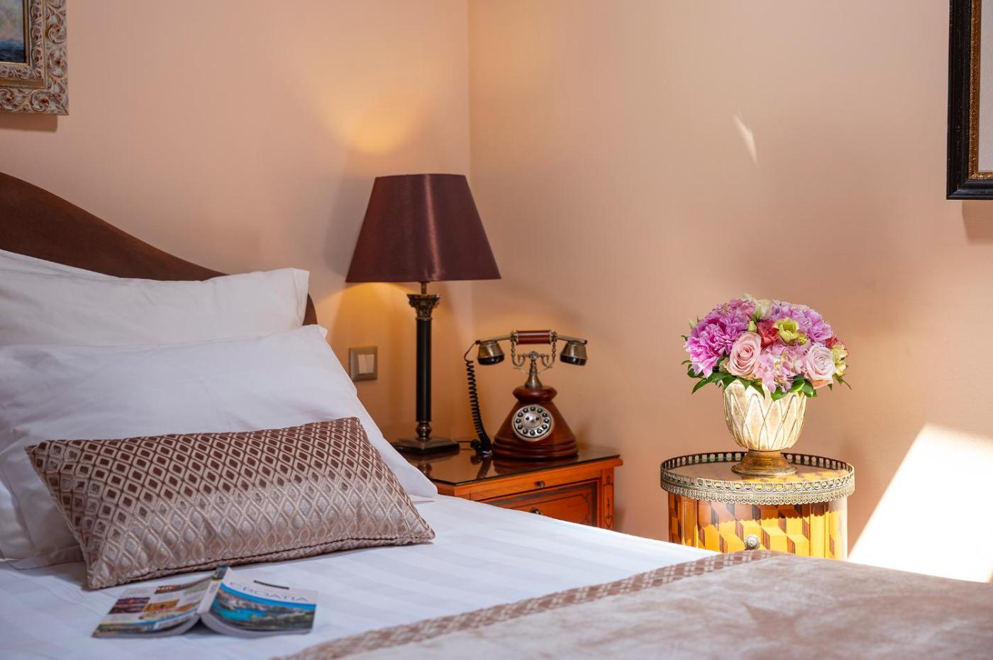 Pokój typu Deluxe. This room offers heritage design with a view of the Gundulić Square, cathedral dome and historic buildings. It features AC, coffee and tea facilities, flat-screen TV , work desk and a minibar. Bathroom provides free Bvlgari toiletries, bathrobe, slippers and a hairdryer. Pokój Dwuosobowy - 3 osobowy. Powierzchnia pokoju ok.: 25 mkw. ;