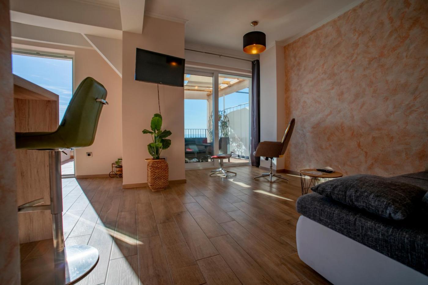 Apartament typu Premium z 1 sypialnią i widokiem na ocean. Boasting a private entrance, this air-conditioned apartment includes 1 living room, 1 separate bedroom and 1 bathroom with a shower and a hairdryer. In the fully equipped kitchen, guests will find a stovetop, a refrigerator, a dishwasher and kitchenware. Featuring a terrace with sea views, this apartment also offers soundproof walls and a flat-screen TV. The unit has 2 beds. Apartament - 4 osobowy. Powierzchnia pokoju ok.: 50 mkw.