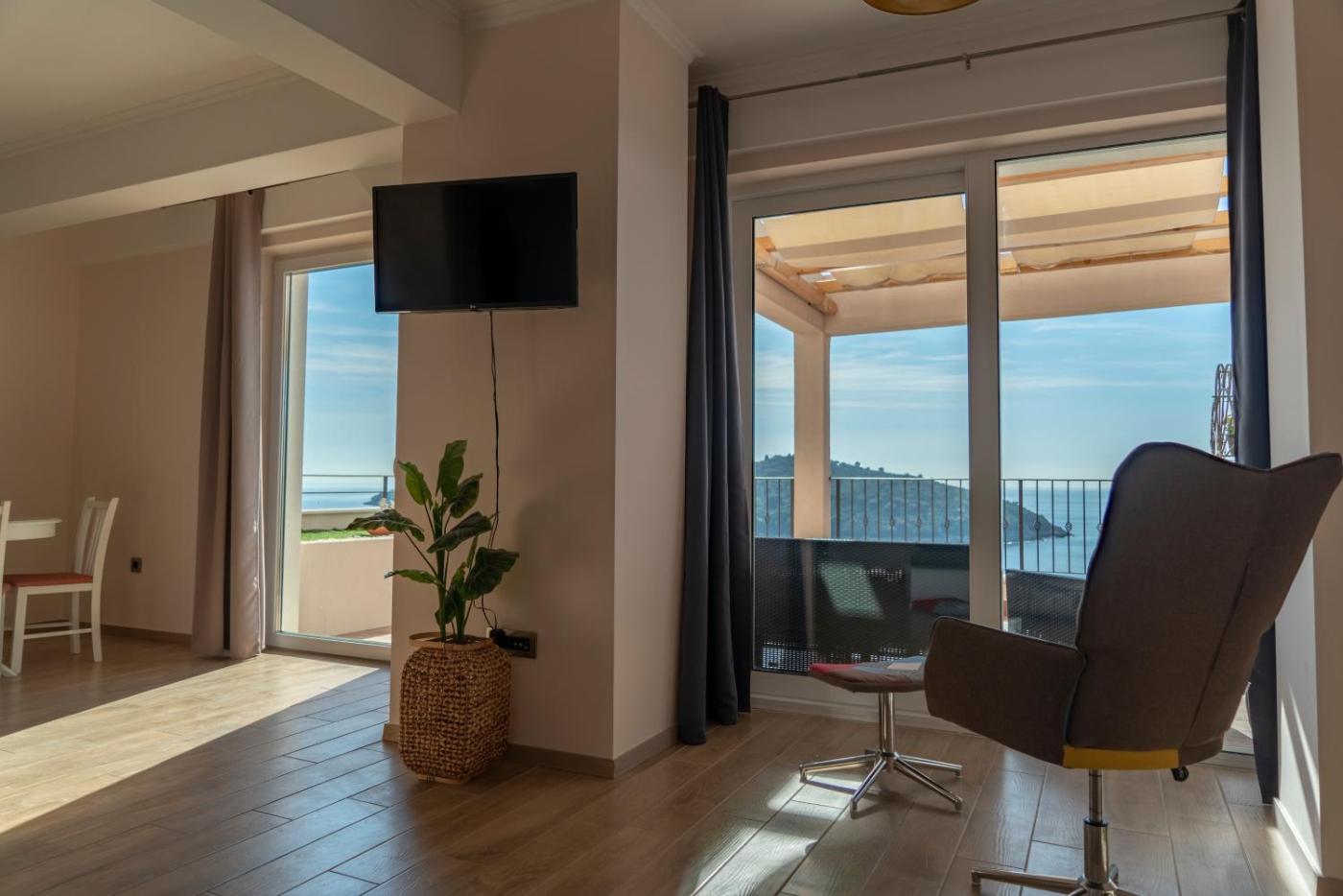 Apartament z 1 sypialnią, widokiem na morze i tarasem. Spacious apartment with a bedroom, a living room with a sofa bed, a kitchen with a dining area and a balcony offering views of the sea, the Old Town and the Lokrum island. Apartament - 4 osobowy. Powierzchnia pokoju ok.: 50 mkw. ;