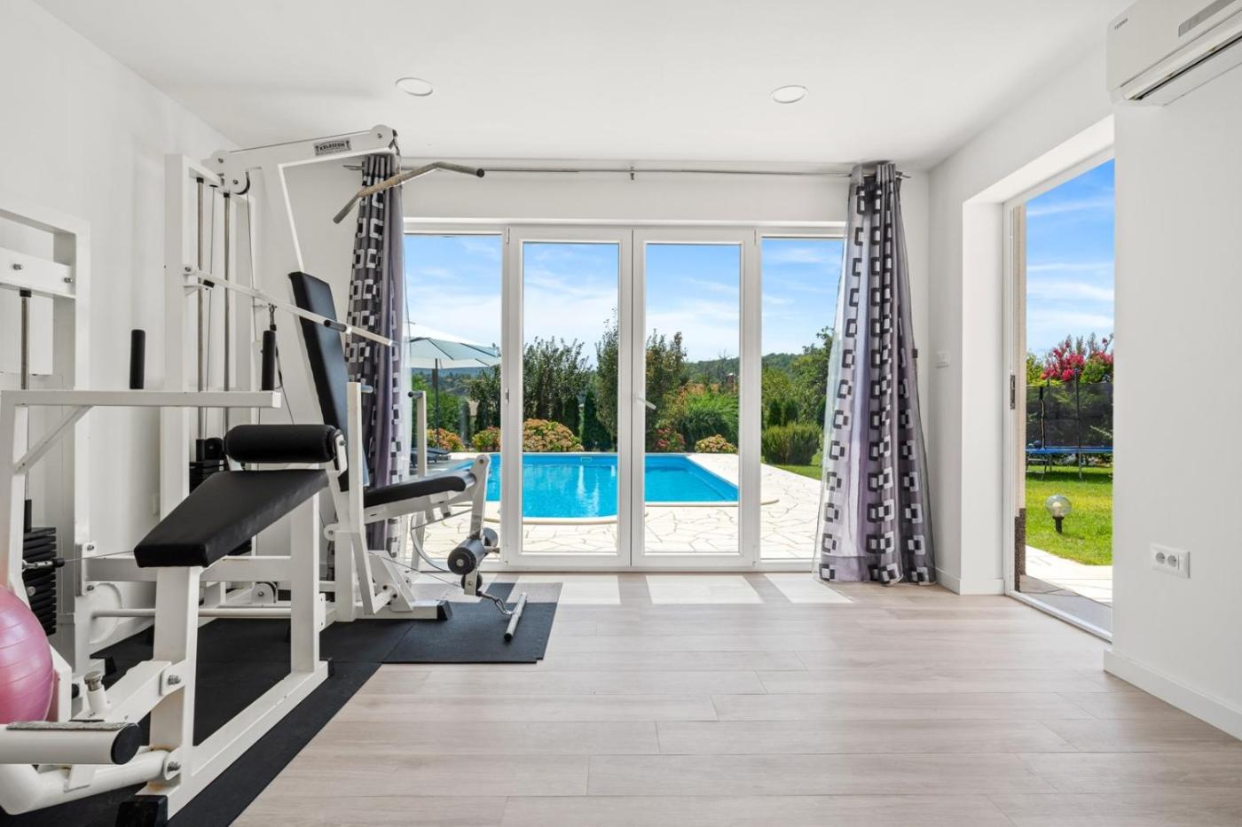 Willa z prywatnym basenem. This villas standout features are the private pool and sauna. Boasting a private entrance, this air-conditioned villa comes with 1 living room, 2 separate bedrooms and 1 bathroom with a shower and a hairdryer. Guests will find a stovetop, a refrigerator, a dishwasher and kitchenware in the well-fitted kitchen. The villa also includes a barbecue. Featuring a terrace with garden views, this villa also features a washing machine and a TV with satellite channels. The unit has 3 beds. Willa - 6 osobowy. Powierzchnia pokoju ok.: 72 mkw.