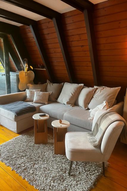 Domek z 3 sypialniami. The fireplace is a top feature of this chalet. Boasting a private entrance, this chalet comes with 1 living room, 3 separate bedrooms and 2 bathrooms with a walk-in shower and a bath. Guests will find a stovetop, a refrigerator, a dishwasher and kitchenware in the kitchen. The chalet also includes a barbecue. Featuring a terrace with garden views, this chalet also features a washing machine and a flat-screen TV with streaming services. The unit has 6 beds. Domek - 6 osobowy. Powierzchnia pokoju ok.: 70 mkw.