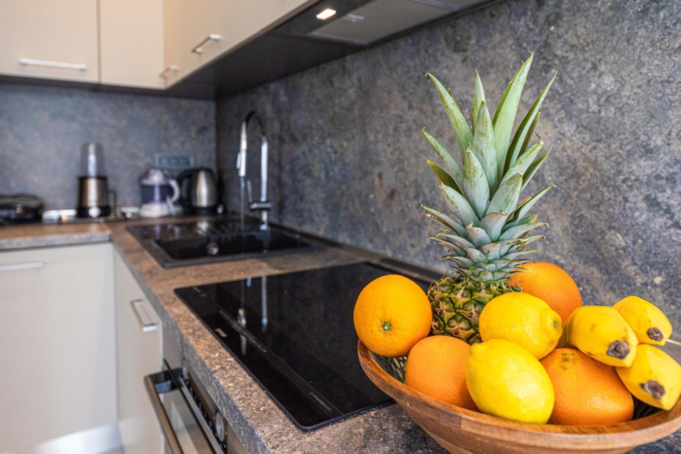 W apartamencie do dyspozycji gości przygotowano sypialnię (1), jadalnię, kuchnię z lodówką oraz salon. Wyposażenie obejmuje też telewizor z płaskim ekranem z dostępem do kanałów kablowych. W apartamencie zapewniono ręczniki i pościel.