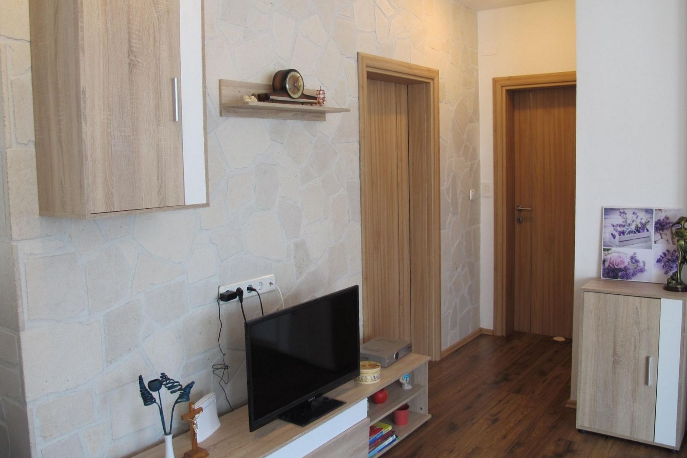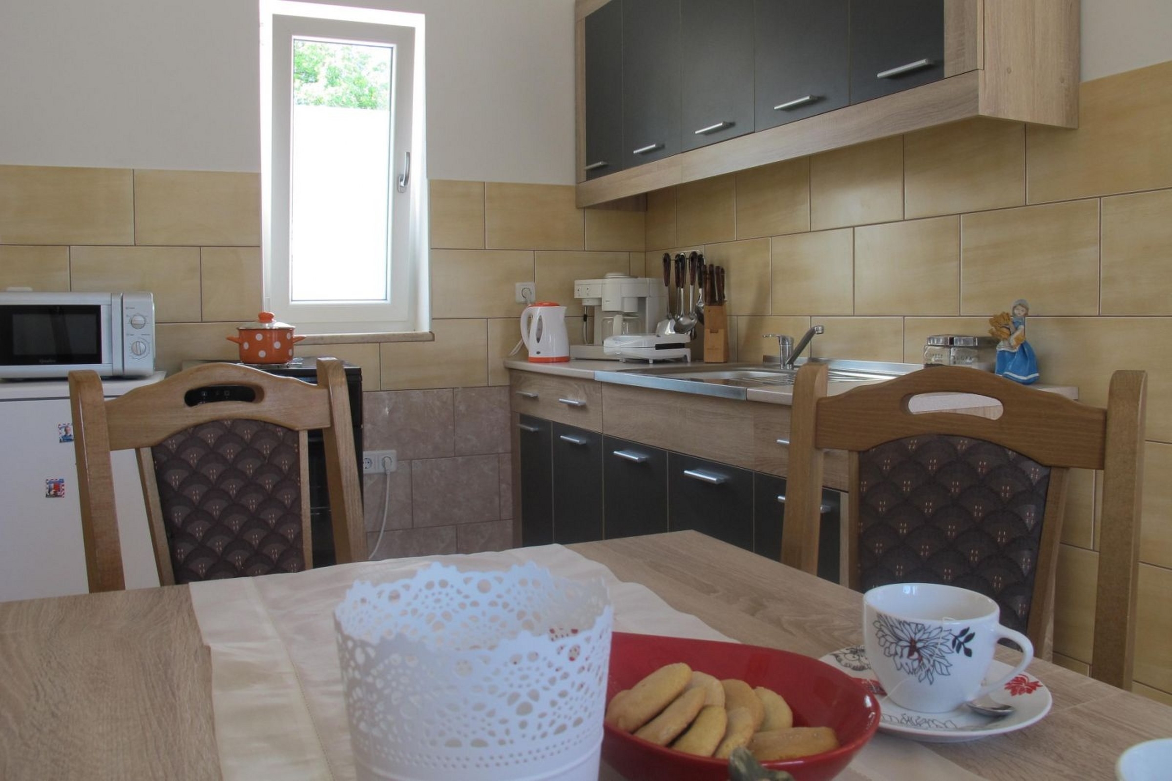 Dom może przyjąć 5 gości. Łóżka znajdują się w sypialniach, których jest 2, na powierzchni 65m2. Goście mają dostęp do tarasu, by korzystać z ciepłych, letnich wieczorów. Grill jest dostępny tylko do użytku gości z tej kwatery. W kwaterze dozwolony jest pobyt zwierzęcia domowego, za dopłatą. WLICZONE W CENĘ: taksa pobytowa, sprzątanie końcowe, klimatyzacja, parking, internet, żelazko, deska do prasowania, suszarka do włosów. NIEOBOWIĄZKOWE KOSZTY DODATKOWE: zwierzęta domowe (10,00 € za nocleg). Dostępność dodatkowych usług w rezerwowanym terminie oraz ich cenę (jeśli nie jest podana) należy sprawdzić wcześniej. Za dodatowe usługi, które nie zostały uwzględnione w kalkulacji ceny, płaci się bezpośrednio właścicielowi obiektu, pod warunkiem śe gość korzysta z tych usług.