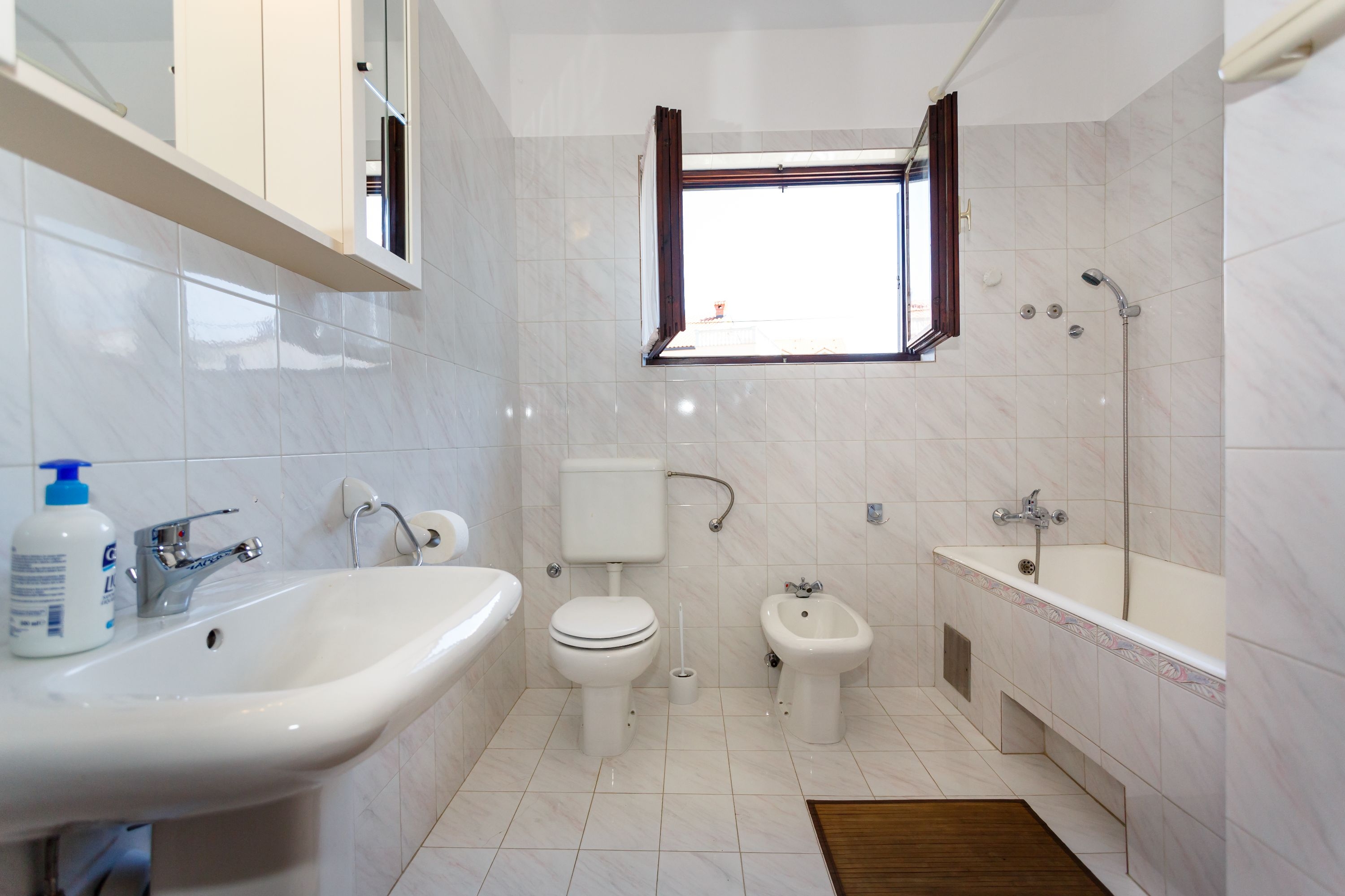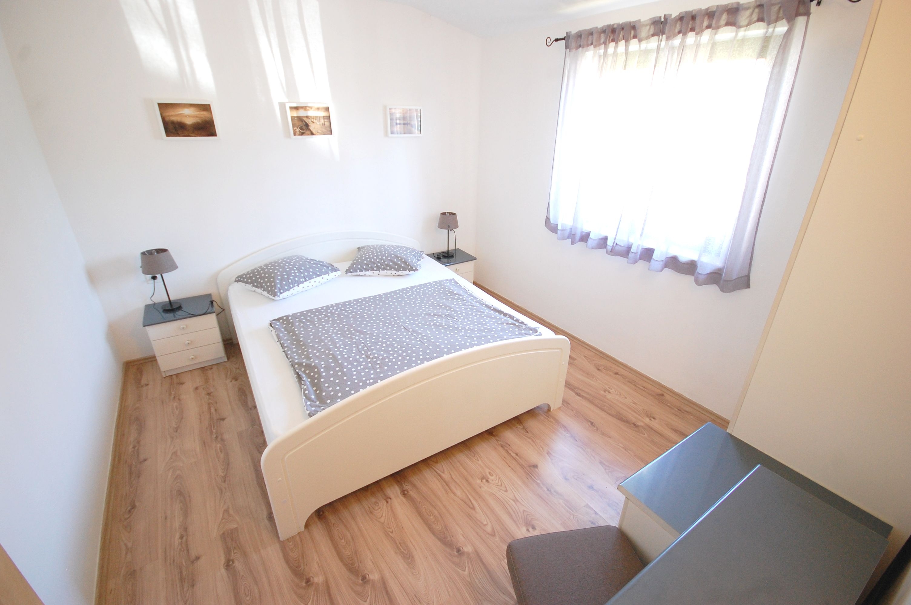 Apartament może przyjąć 4 gości. Łóżka znajdują się w sypialniach, których jest 2, na powierzchni 50m2. Goście mają dostęp do tarasu, by korzystać z ciepłych, letnich wieczorów. Z apartamentu roztacza się widok na morze. Możliwość przygotowywania posiłków poprzez korzystanie ze wspólnego grilla. WLICZONE W CENĘ: taksa pobytowa, sprzątanie końcowe, klimatyzacja, parking, internet. Dostępność dodatkowych usług w rezerwowanym terminie oraz ich cenę (jeśli nie jest podana) należy sprawdzić wcześniej. Za dodatowe usługi, które nie zostały uwzględnione w kalkulacji ceny, płaci się bezpośrednio właścicielowi obiektu, pod warunkiem śe gość korzysta z tych usług.
