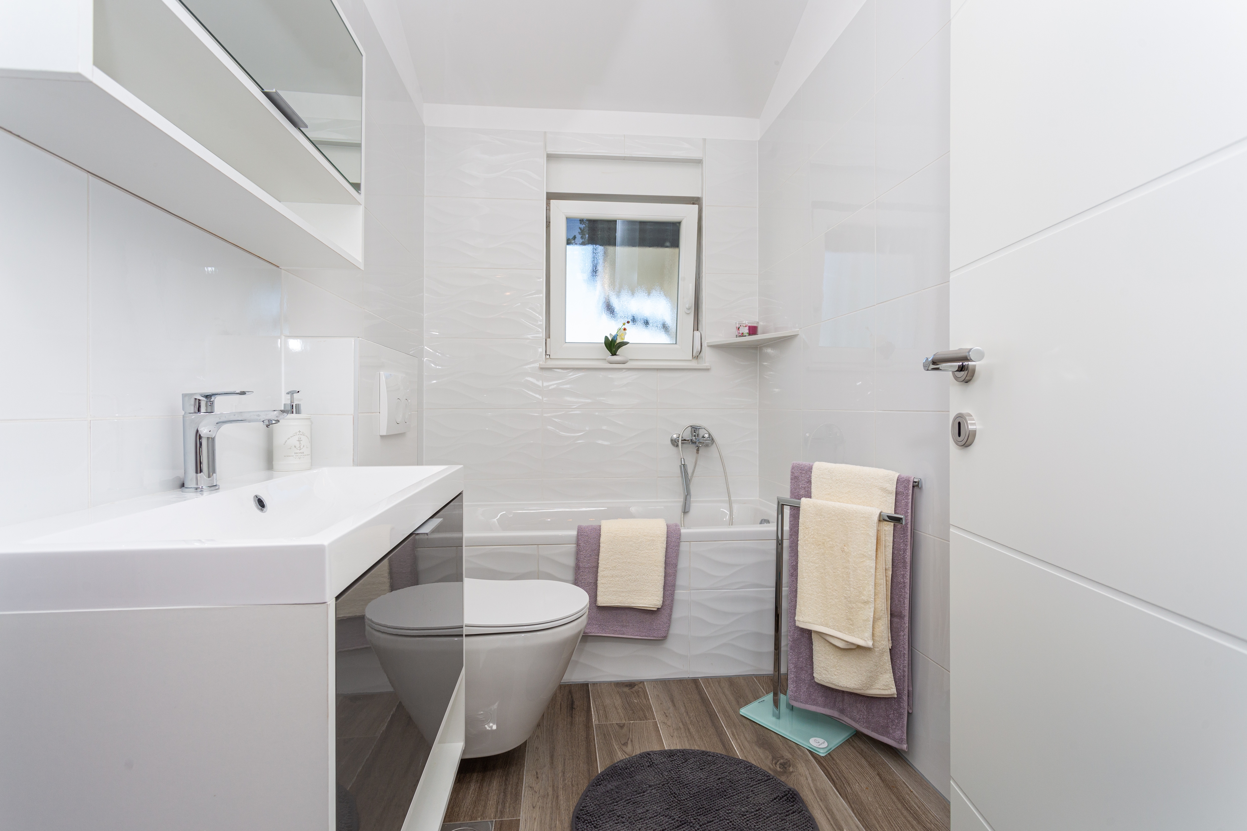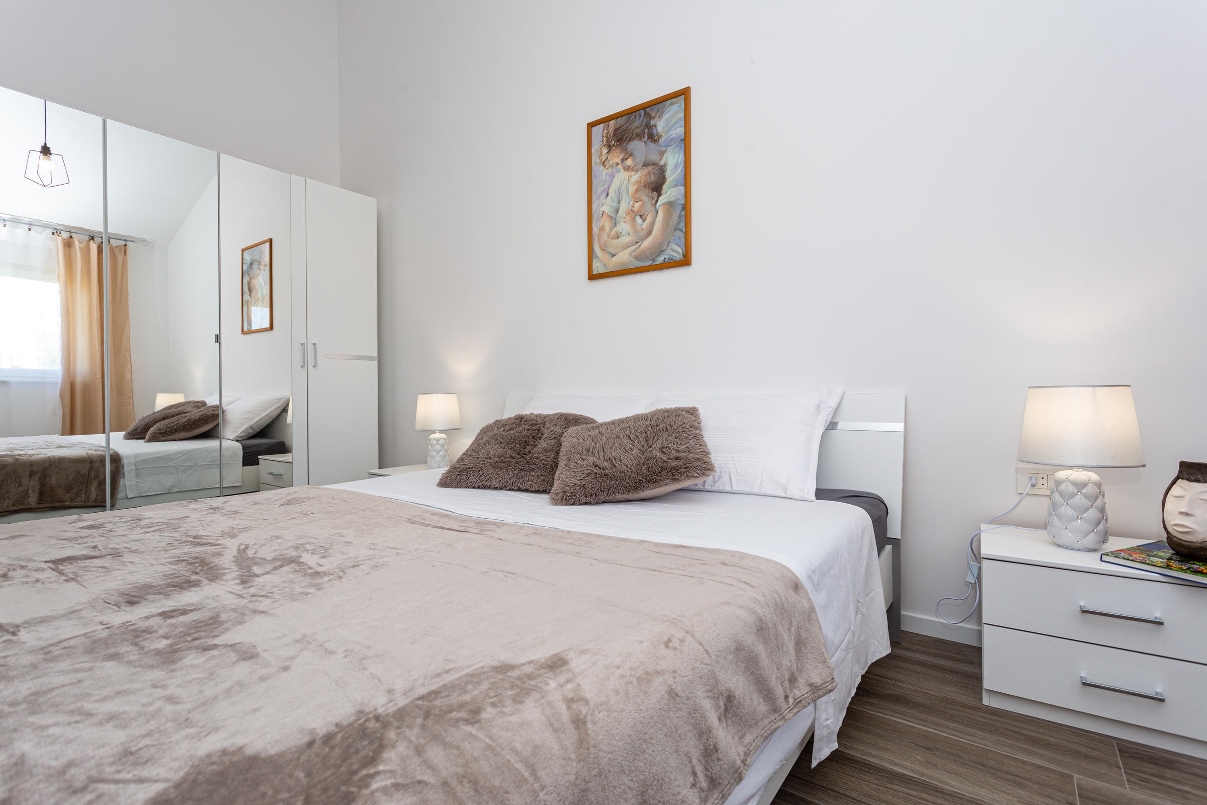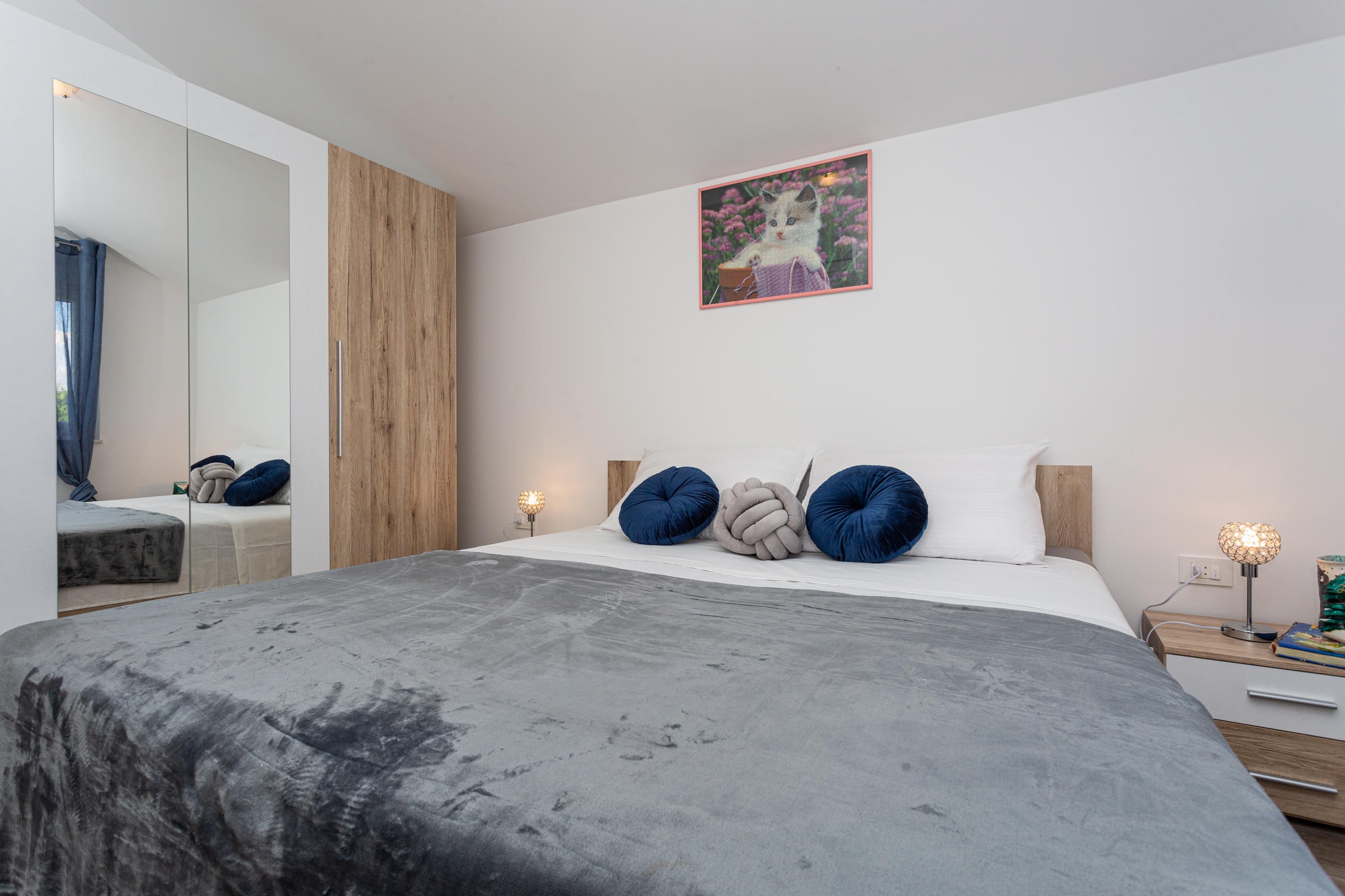 Apartament może przyjąć 5 gości. Łóżka znajdują się w sypialniach, których jest 2, oraz w pokoju dziennym, na powierzchni 74m2. Goście mają dostęp do tarasu, by korzystać z ciepłych, letnich wieczorów. Z apartamentu roztacza się widok na morze. Możliwość przygotowywania posiłków poprzez korzystanie ze wspólnego grilla. W kwaterze dozwolony jest pobyt zwierzęcia domowego, za dopłatą. WLICZONE W CENĘ: taksa pobytowa, sprzątanie końcowe, klimatyzacja, parking, internet, żelazko, suszarka do włosów. OBOWIĄZKOWE KOSZTY DODATKOWE: dopłata za krótki termin (procent dopłaty w zalezności od liczby noclegów: 30% - 1, 20% - 2, 10% - 3). NIEOBOWIĄZKOWE KOSZTY DODATKOWE: zwierzęta domowe (15,00 € za nocleg). Dostępność dodatkowych usług w rezerwowanym terminie oraz ich cenę (jeśli nie jest podana) należy sprawdzić wcześniej. Za dodatowe usługi, które nie zostały uwzględnione w kalkulacji ceny, płaci się bezpośrednio właścicielowi obiektu, pod warunkiem śe gość korzysta z tych usług.