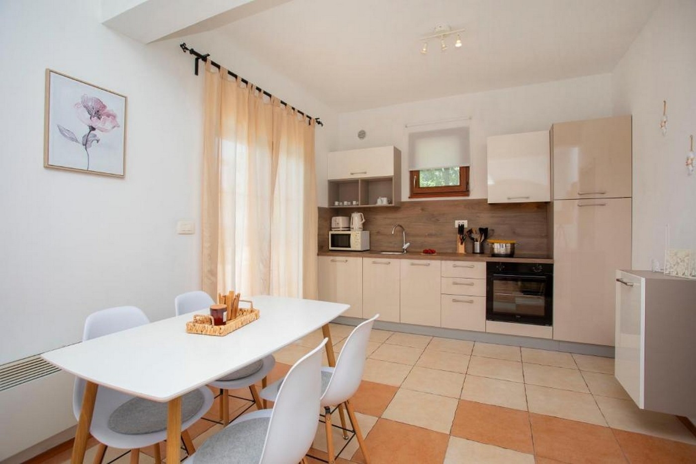 Dom może przyjąć 6 gości. Łóżka znajdują się w sypialniach, których jest 2, oraz w pokoju dziennym, na powierzchni 59m2. Goście mają dostęp do tarasu, by korzystać z ciepłych, letnich wieczorów. Możliwość przygotowywania posiłków poprzez korzystanie ze wspólnego grilla. W trakcie swojego pobytu goście mogą zrelakswować się w prywatnym basenie. W kwaterze dozwolony jest pobyt zwierzęcia domowego, za dopłatą. WLICZONE W CENĘ: taksa pobytowa, sprzątanie końcowe, klimatyzacja, basen, parking, internet, łóżeczko dziecięce, żelazko, deska do prasowania, suszarka do włosów, przenośny grill. OBOWIĄZKOWE KOSZTY DODATKOWE: dopłata za krótki termin (procent dopłaty w zalezności od liczby noclegów: 30% - 1, 20% - 2, 10% - 3). NIEOBOWIĄZKOWE KOSZTY DODATKOWE: zwierzęta domowe (10,00 € za nocleg). Dostępność dodatkowych usług w rezerwowanym terminie oraz ich cenę (jeśli nie jest podana) należy sprawdzić wcześniej. Za dodatowe usługi, które nie zostały uwzględnione w kalkulacji ceny, płaci się bezpośrednio właścicielowi obiektu, pod warunkiem śe gość korzysta z tych usług.