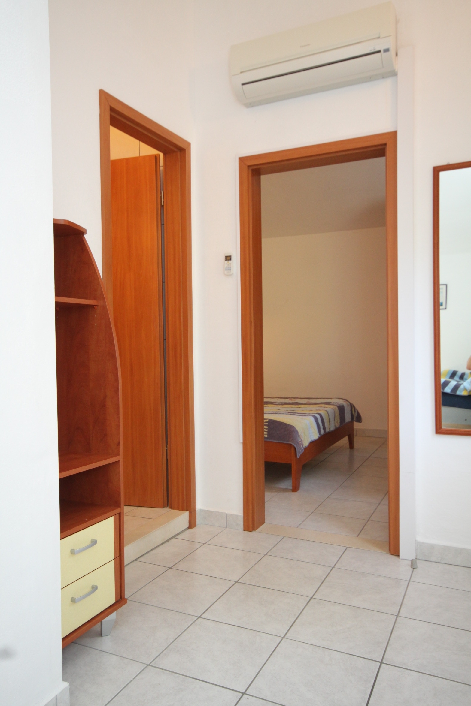 Apartament może przyjąć 4 gości. Łóżka znajdują się w sypialniach, których jest 1, oraz w pokoju dziennym, na powierzchni 31m2. Goście mają dostęp do tarasu, by korzystać z ciepłych, letnich wieczorów. Z apartamentu roztacza się widok na morze. Możliwość przygotowywania posiłków poprzez korzystanie ze wspólnego grilla. W kwaterze dozwolony jest pobyt zwierzęcia domowego, za dopłatą. WLICZONE W CENĘ: taksa pobytowa, sprzątanie końcowe, klimatyzacja, parking, internet, miejsce do cumowania łodzi, żelazko, deska do prasowania, parasol, leżaki. NIEOBOWIĄZKOWE KOSZTY DODATKOWE: pranie bielizny (10,00 € pranie), zwierzęta domowe (10,00 € za nocleg). Dostępność dodatkowych usług w rezerwowanym terminie oraz ich cenę (jeśli nie jest podana) należy sprawdzić wcześniej. Za dodatowe usługi, które nie zostały uwzględnione w kalkulacji ceny, płaci się bezpośrednio właścicielowi obiektu, pod warunkiem śe gość korzysta z tych usług.