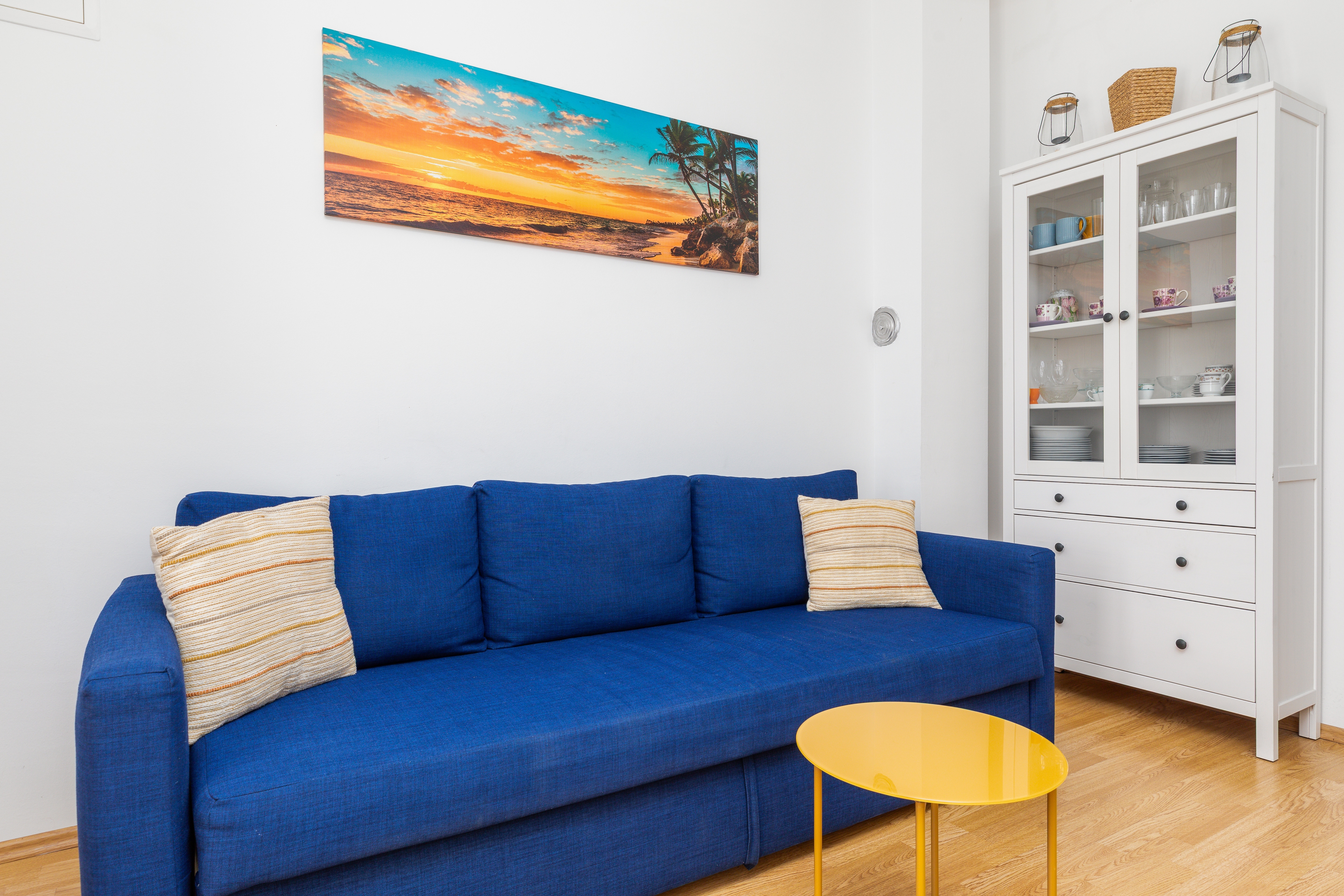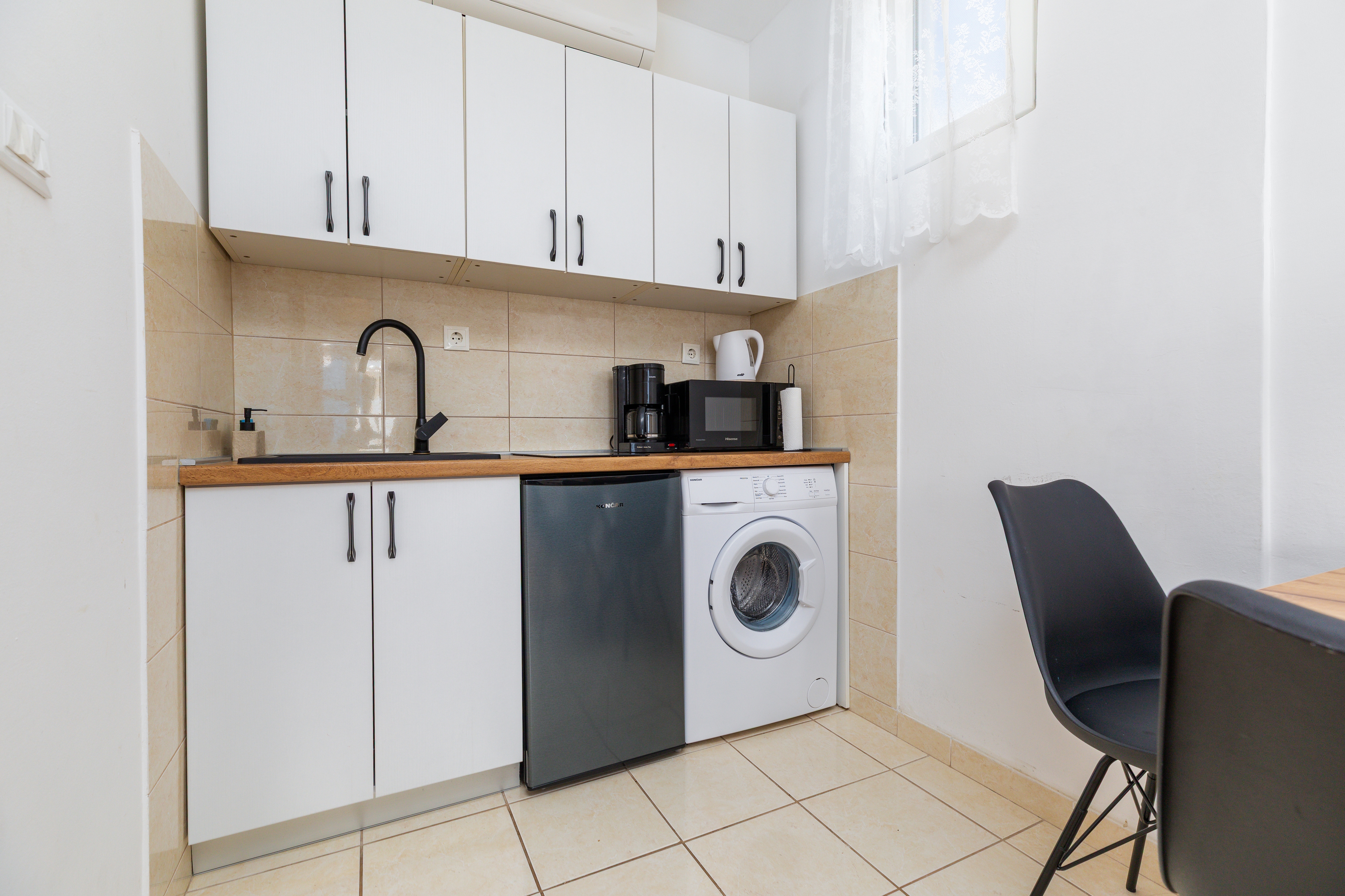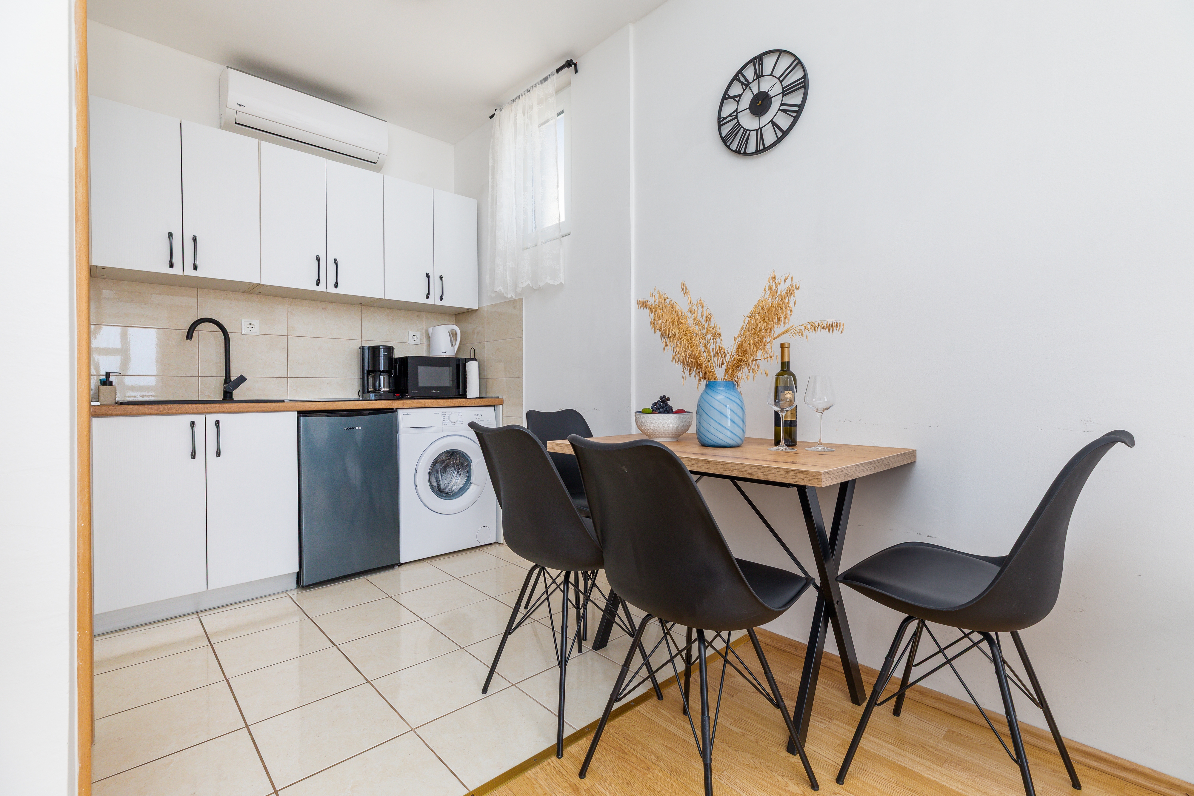 Apartament może przyjąć 4 gości. Łóżka znajdują się w sypialniach, których jest 1, oraz w pokoju dziennym, na powierzchni 42m2. Goście mają dostęp do tarasu, by korzystać z ciepłych, letnich wieczorów. Z apartamentu roztacza się widok na morze. Pomieszczenia rezerwowanej kwatery nie są połączone w jedną całość. Kwatera ma pomieszczenia, które są oddzielone od reszty tej kwatery. WLICZONE W CENĘ: taksa pobytowa, sprzątanie końcowe, klimatyzacja, parking, internet, łóżeczko dziecięce, żelazko, suszarka do włosów. Dostępność dodatkowych usług w rezerwowanym terminie oraz ich cenę (jeśli nie jest podana) należy sprawdzić wcześniej. Za dodatowe usługi, które nie zostały uwzględnione w kalkulacji ceny, płaci się bezpośrednio właścicielowi obiektu, pod warunkiem śe gość korzysta z tych usług.
