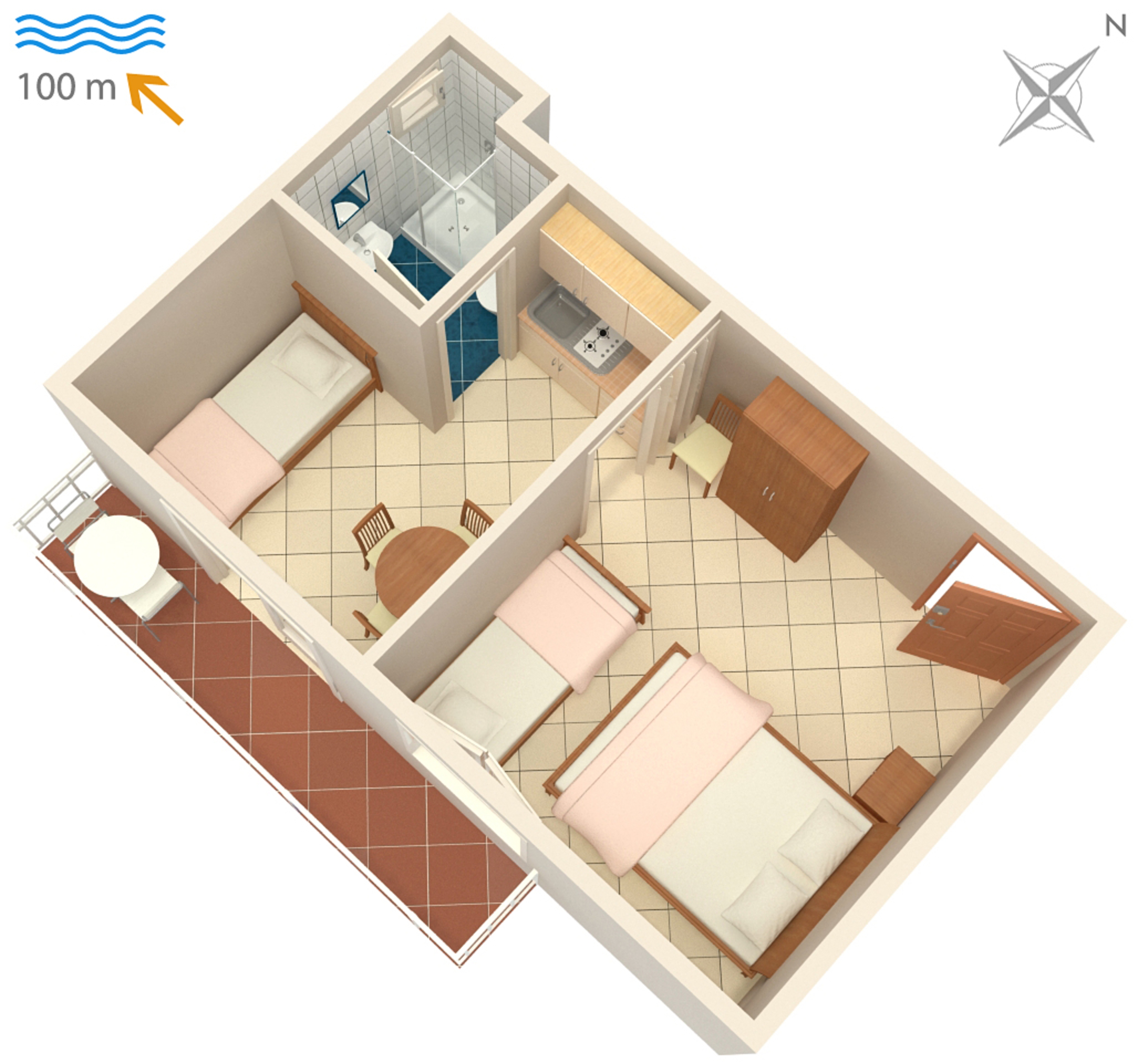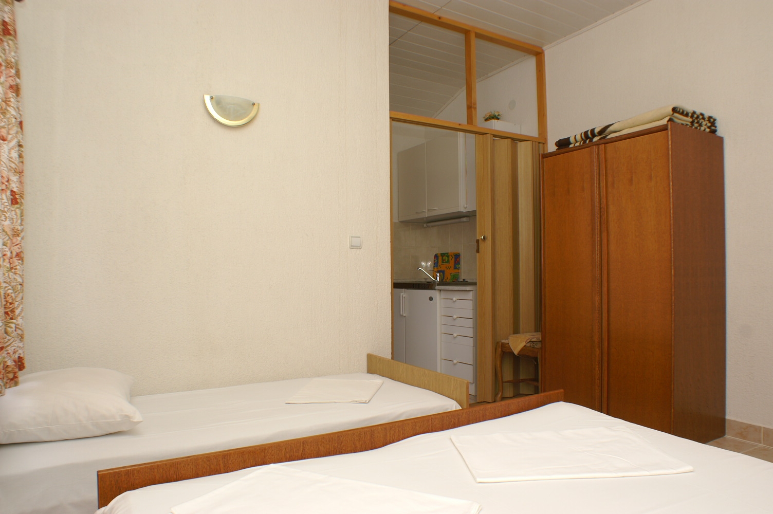 Studio może przyjąć 4 gości. Łóżka znajdują się w sypialniach, których jest 1, oraz w jadalni, na powierzchni 26m2. Goście mają dostęp do balkonu, by korzystać z ciepłych, letnich wieczorów. Z apartamentu typu studio roztacza się widok na morze. Możliwość przygotowywania posiłków poprzez korzystanie ze wspólnego grilla. WLICZONE W CENĘ: taksa pobytowa, sprzątanie końcowe, klimatyzacja, parking, internet, łóżeczko dziecięce, przenośny grill. OBOWIĄZKOWE KOSZTY DODATKOWE: dopłata za krótki termin (procent dopłaty w zalezności od liczby noclegów: 30% - 1, 20% - 2, 10% - 3). NIEOBOWIĄZKOWE KOSZTY DODATKOWE: pranie bielizny (5,00 € pranie). Dostępność dodatkowych usług w rezerwowanym terminie oraz ich cenę (jeśli nie jest podana) należy sprawdzić wcześniej. Za dodatowe usługi, które nie zostały uwzględnione w kalkulacji ceny, płaci się bezpośrednio właścicielowi obiektu, pod warunkiem śe gość korzysta z tych usług. Zniżki od ceny podstawowej: bezpłatny dzień 21=19 (przy pobycie, trwającym co najmniej 21 dni, trzymujecie dwa bezpłatne dni na pobyt do 31.12.2026).