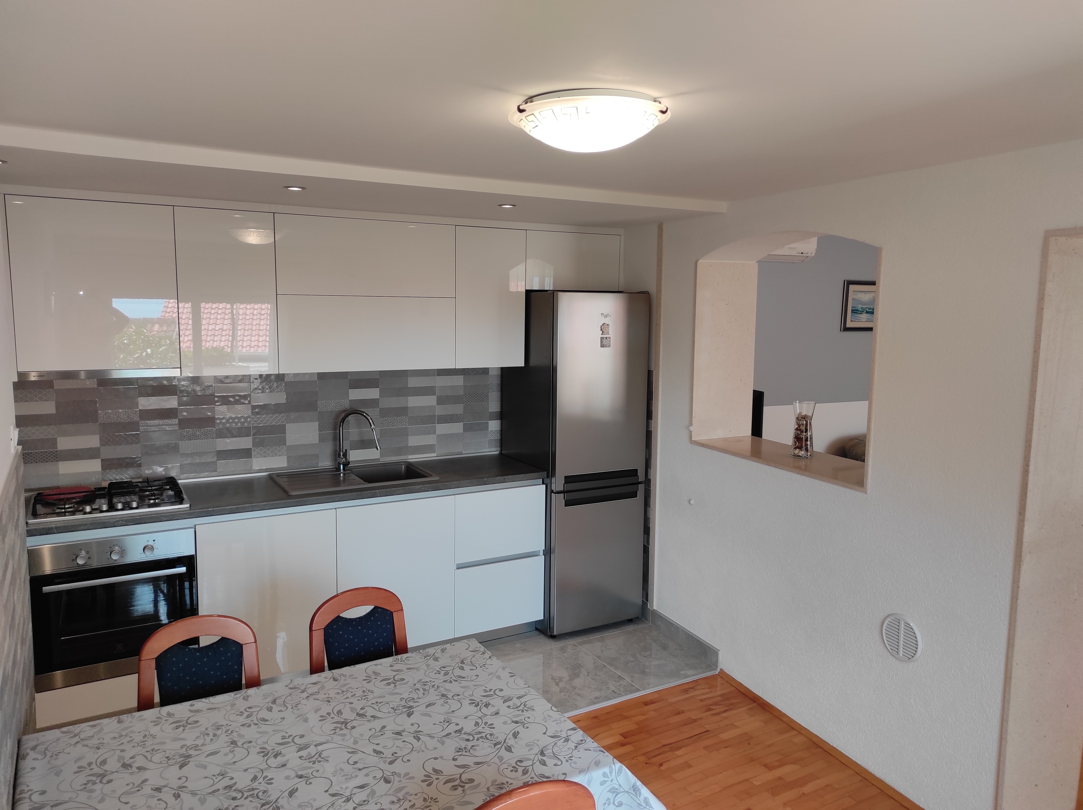 Apartament może przyjąć 4 gości. Łóżka znajdują się w sypialniach, których jest 1, oraz w pokoju dziennym, na powierzchni 50m2. Goście mają dostęp do tarasu, by korzystać z ciepłych, letnich wieczorów. Z apartamentu roztacza się widok na morze. WLICZONE W CENĘ: taksa pobytowa, sprzątanie końcowe, klimatyzacja, parking, internet, suszarka do włosów. OBOWIĄZKOWE KOSZTY DODATKOWE: dopłata za krótki termin (procent dopłaty w zalezności od liczby noclegów: 30% - 1, 20% - 2, 10% - 3). Dostępność dodatkowych usług w rezerwowanym terminie oraz ich cenę (jeśli nie jest podana) należy sprawdzić wcześniej. Za dodatowe usługi, które nie zostały uwzględnione w kalkulacji ceny, płaci się bezpośrednio właścicielowi obiektu, pod warunkiem śe gość korzysta z tych usług.