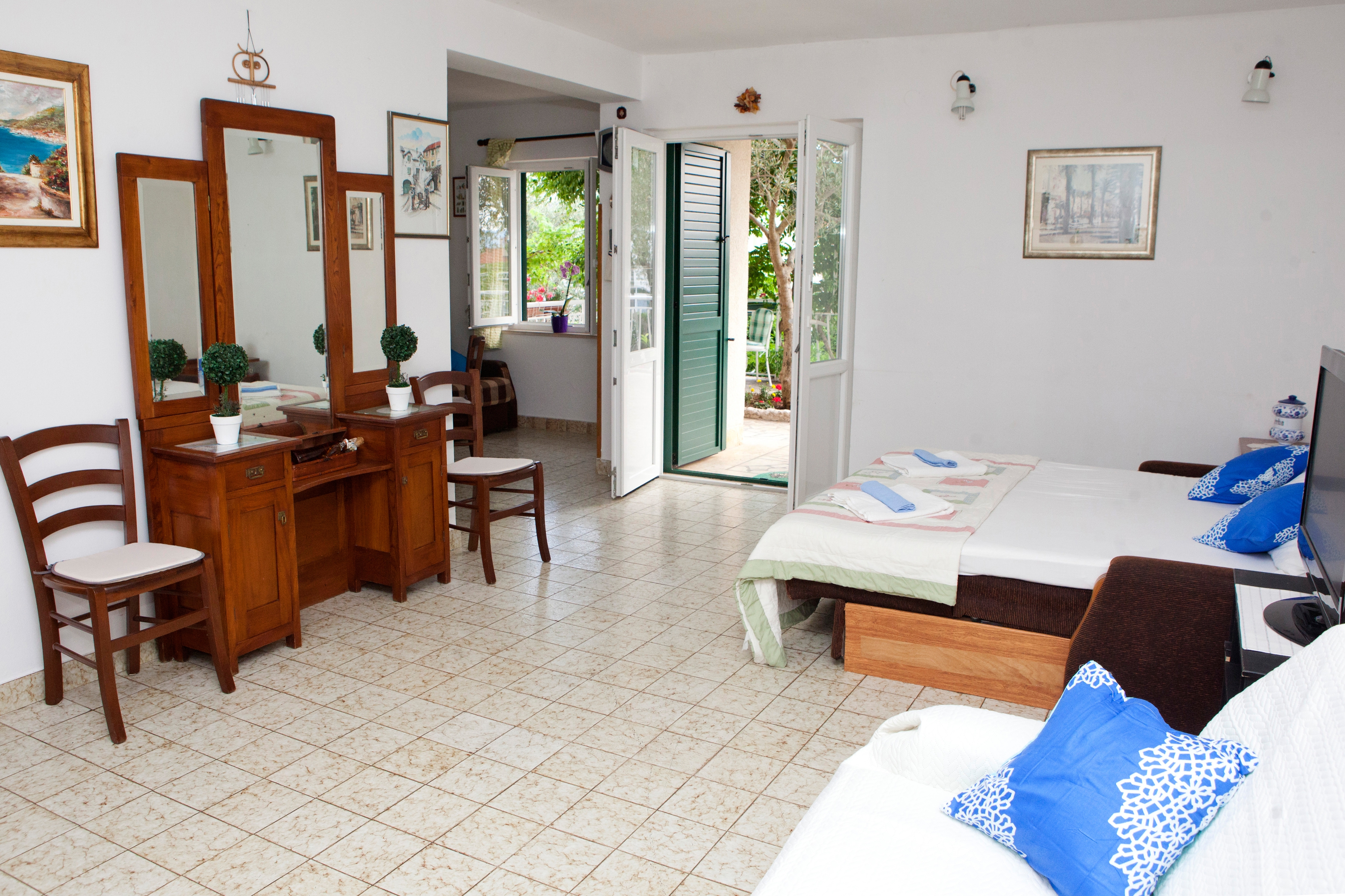 Obiekt 2588 w mieście Promajna, Makarska - Środkowa Dalmacja ma kwatery typu Apartament (3) i oddalona jest 180 m od morza. Plaża najbliższa obiektowi jest żwirowa. Dom jest podzielony na kilka kwater, więc będą w nim w czasie Państwa pobytu prawdopodobnie przebywać także inni goście. Gospodarze będą przebywać w obiekcie w czasie Państwa urlopu. Właściciel nie ma obowiązku przyjąć dodatkowych niezgłoszonych osób ani zwierząt domowych, dlatego też trzeba je wcześniej zgłosić.ZAWARTOŚĆ Parking (Liczba miejsc parkingowych: 5, Odległość od obiektu: 5 m), Grill: wspólny, WiFi Internet, Pranie bielizny, Suszarka do włosów, Żelazko, Deska do prasowania, Łóżeczko dziecięce LOKALIZACJA I DOSTĘP Obiekt znajduje się przy lokalnej drodze Pomiędzy obiektem i plażą znajduje się lokalna droga Możliwość dojazdu samochodem: Tak Obiekt znajduje się w relatywnie cichej okolicy Obiekt jest częściowo otoczony zielenią ODLEGŁOŚCI Morze: 180 m Plaża: 180 m Centrum: 3,5 km Sklep: 200 m Pierwsza pomoc: 3,5 km Apteka: 3,5 km Kantor: 400 m Bankomat: 200 m Informacje turystyczne: 550 m Stacja benzynowa: 3,5 km Targ: 3,5 km