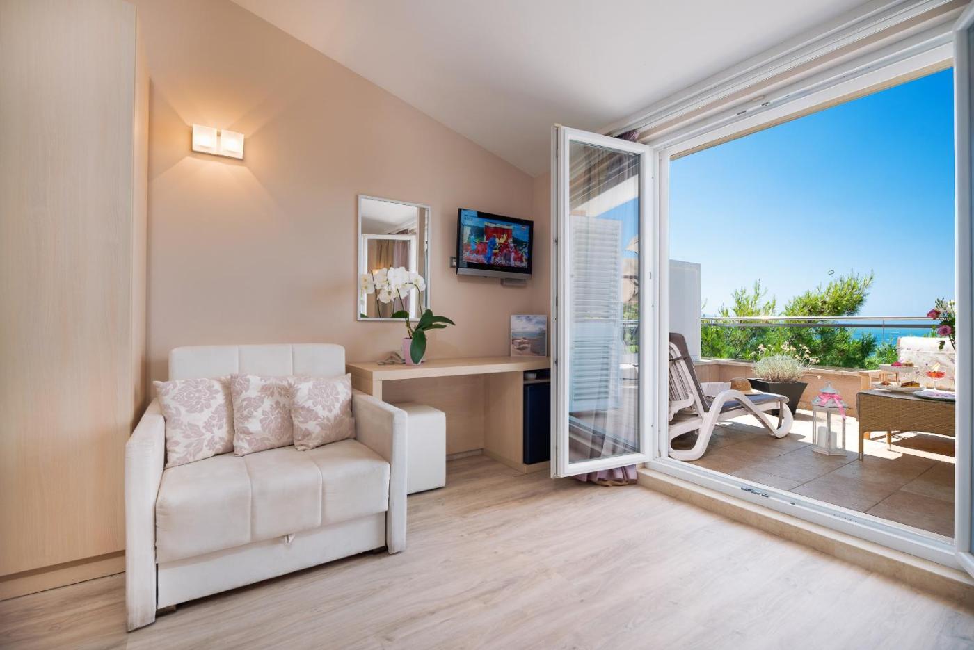 Pokój Dwuosobowy typu Superior. Ten przestronny, przytulny oraz elegancko urządzony pokój znajduje się na ostatnim piętrze i zapewnia duży balkon z meblami ogrodowymi i 2 leżakami, z których można podziwiać widoki na morze oraz wyspy Brač i Hvar. Pokój Dwuosobowy - 3 osobowy. Powierzchnia pokoju ok.: 24 mkw. ;