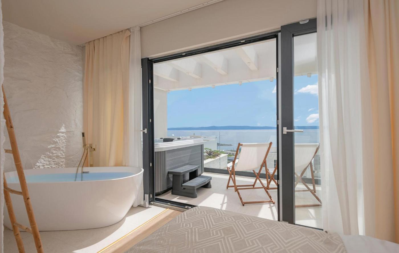 Obiekt Nice Home In Makarska With Jacuzzi oferuje centrum spa i odnowy biologicznej z wanną z hydromasażem i odkrytym basenem.