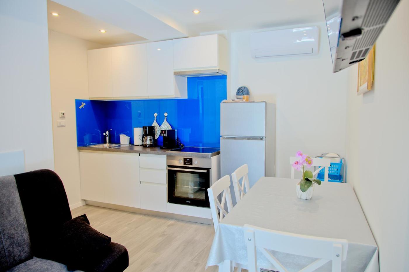 Apartament z 2 sypialniami. Boasting a private entrance, this air-conditioned apartment features 1 living room, 2 separate bedrooms and 1 bathroom with a bath or a shower and a hairdryer. In the fully equipped kitchen, guests will find a refrigerator, a dishwasher, kitchenware and a tea and coffee maker. Featuring a terrace, this apartment also features a washing machine, soundproof walls and a flat-screen TV. The unit has 4 beds. Apartament - 4 osobowy. Powierzchnia pokoju ok.: 45 mkw.