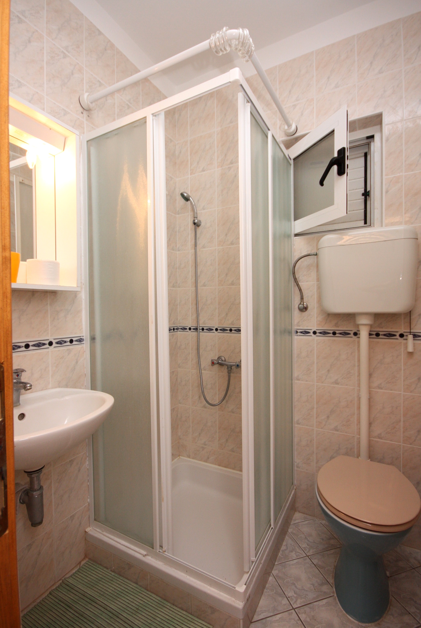 Pokój może przyjąć 3 gości. Łóżka znajdują się w sypialniach, których jest 1, na powierzchni 16m2. Możliwe jest korzystanie ze wspólnej kuchni. Możliwość przygotowywania posiłków poprzez korzystanie ze wspólnego grilla. Rezerwowana kwatera nie ma balkonu ani tarasu. Rezerwowana kwatera to pokój z własną łazienką, z możliwością korzystania ze wspólnej kuchni bez dopłaty. WLICZONE W CENĘ: taksa pobytowa, sprzątanie końcowe, klimatyzacja, wspólna kuchnia, parking, internet, łóżeczko dziecięce, żelazko, deska do prasowania, suszarka do włosów. NIEOBOWIĄZKOWE KOSZTY DODATKOWE: pranie bielizny (6,00 € pranie). Dostępność dodatkowych usług w rezerwowanym terminie oraz ich cenę (jeśli nie jest podana) należy sprawdzić wcześniej. Za dodatowe usługi, które nie zostały uwzględnione w kalkulacji ceny, płaci się bezpośrednio właścicielowi obiektu, pod warunkiem śe gość korzysta z tych usług.