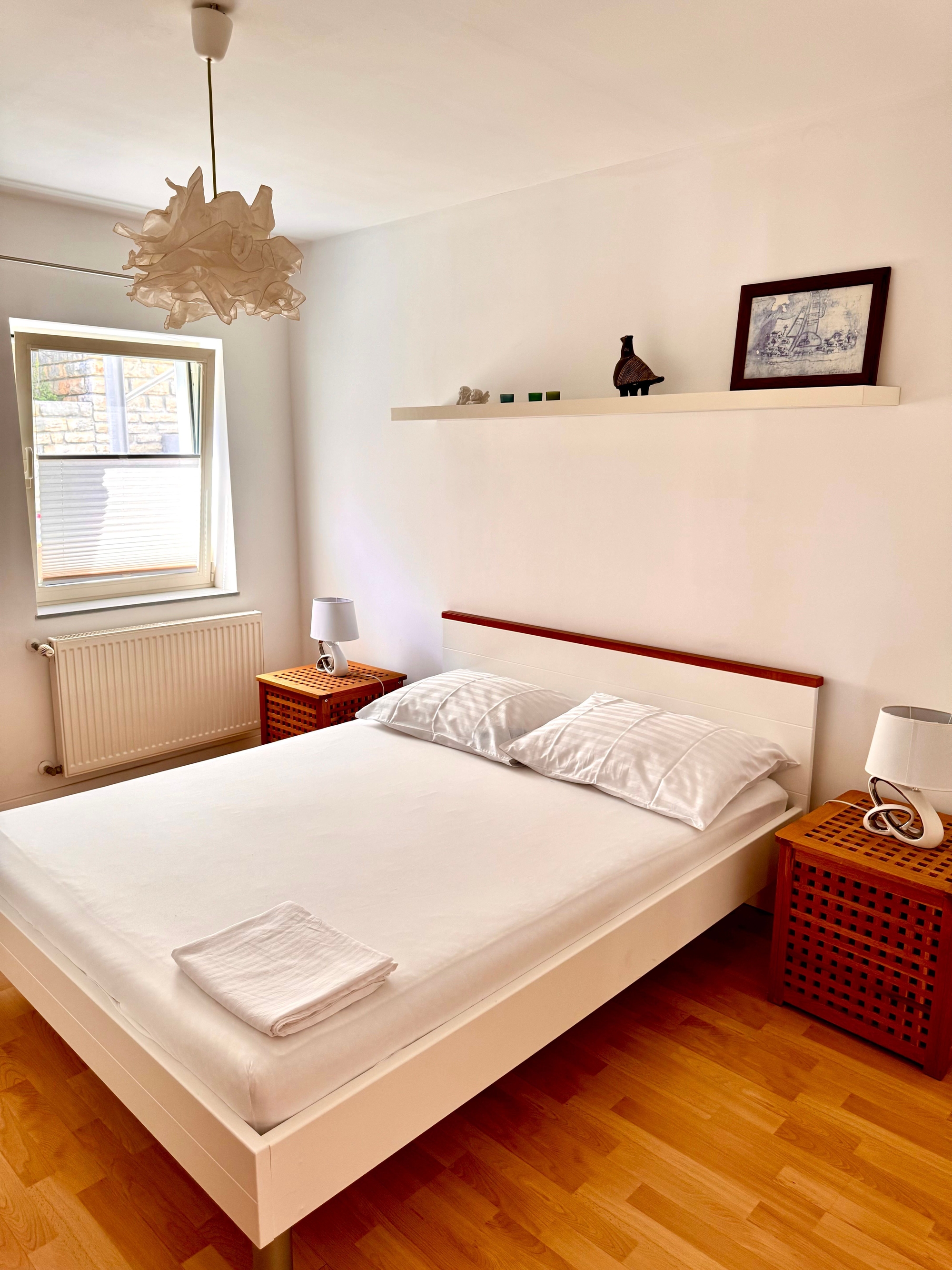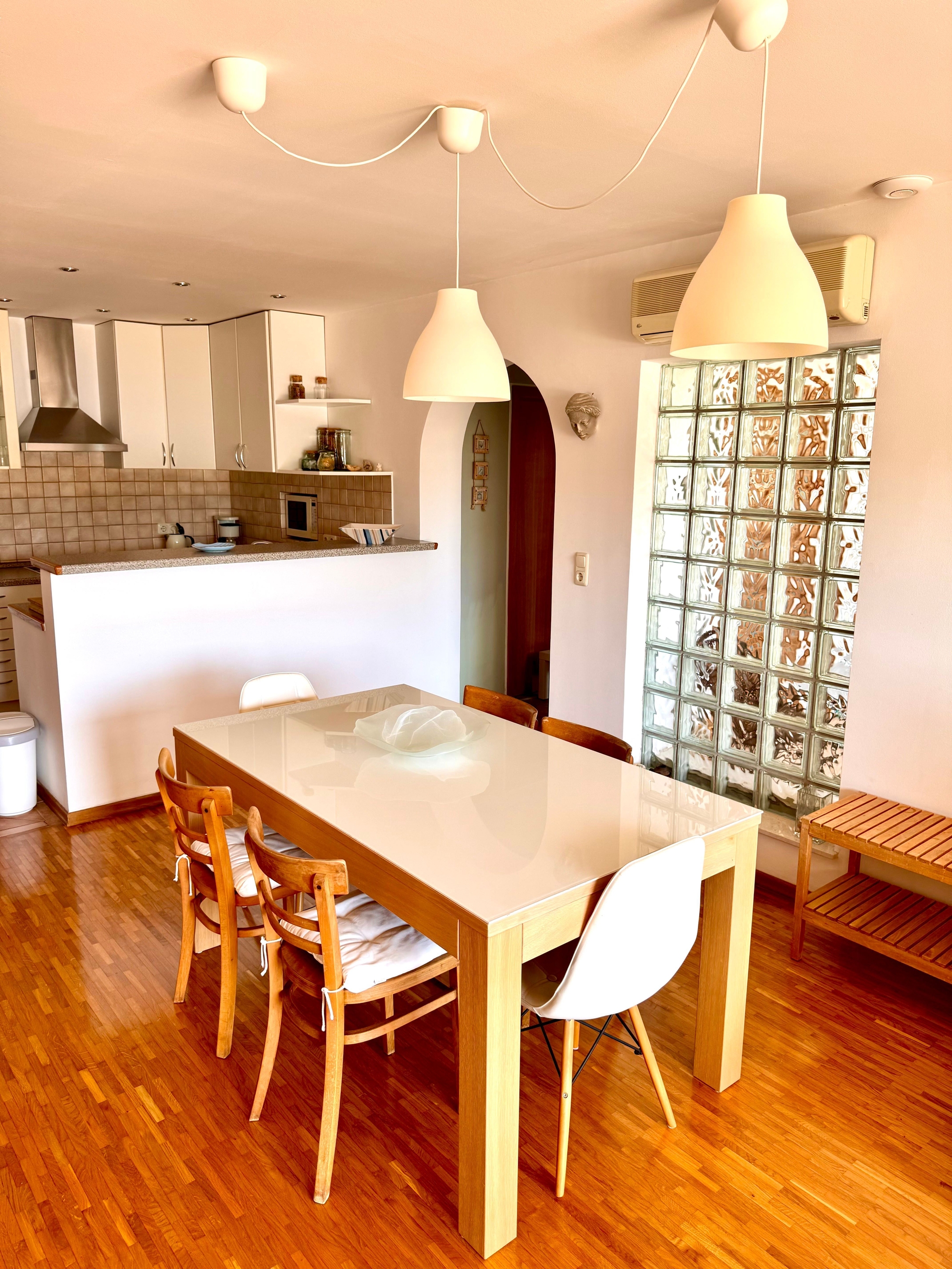 Apartament może przyjąć 4 gości. Łóżka znajdują się w sypialniach, których jest 2, na powierzchni 54m2. Goście mają dostęp do tarasu, by korzystać z ciepłych, letnich wieczorów. Z apartamentu roztacza się widok na morze. Możliwość przygotowywania posiłków poprzez korzystanie ze wspólnego grilla. WLICZONE W CENĘ: taksa pobytowa, sprzątanie końcowe, klimatyzacja, parking, internet, miejsce do cumowania łodzi, żelazko, suszarka do włosów, parasol. Dostępność dodatkowych usług w rezerwowanym terminie oraz ich cenę (jeśli nie jest podana) należy sprawdzić wcześniej. Za dodatowe usługi, które nie zostały uwzględnione w kalkulacji ceny, płaci się bezpośrednio właścicielowi obiektu, pod warunkiem śe gość korzysta z tych usług.