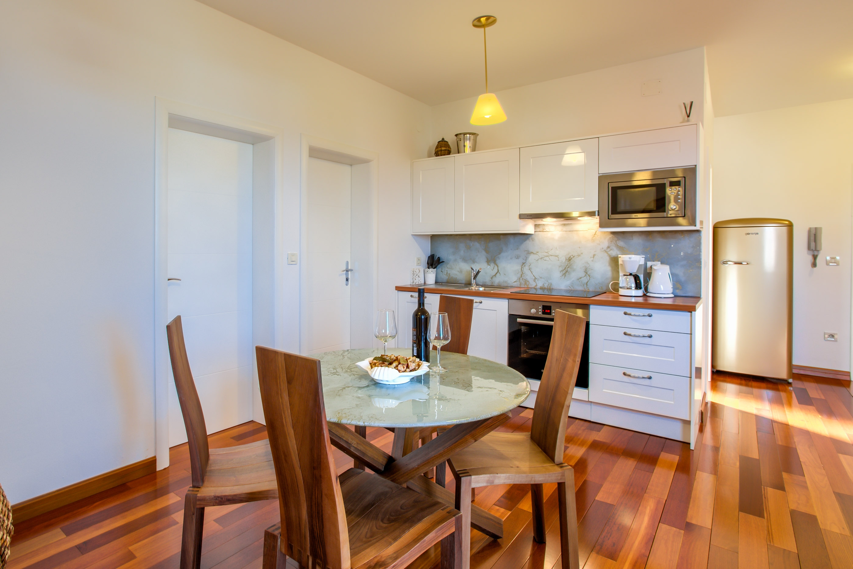 Apartament może przyjąć 4 gości. Łóżka znajdują się w sypialniach, których jest 2, na powierzchni 46m2. Goście mają dostęp do tarasu, by korzystać z ciepłych, letnich wieczorów. Z apartamentu roztacza się widok na morze. Możliwość przygotowywania posiłków poprzez korzystanie ze wspólnego grilla. W trakcie swojego pobytu goście mogą korzystać ze wspólnego basenu. W kwaterze dozwolony jest pobyt zwierzęcia domowego, za dopłatą. W rezerwowanej kwaterze na miejscu jest pobierana kaucja (jej wysokość jest podana na stronie). WLICZONE W CENĘ: sprzątanie końcowe, klimatyzacja, basen, parking, internet, łóżeczko dziecięce, suszarka do włosów. OBOWIĄZKOWE KOSZTY DODATKOWE: taksa pobytowa (dorośli 0,93 € - 2,00 € noclegosoba, zniżka dla dzieci w wieku 12 - 17 lat), depozyt (200,00 € jednorazowo), dopłata za krótki termin (procent dopłaty w zalezności od liczby noclegów: 30% - 1, 20% - 2, 10% - 3). NIEOBOWIĄZKOWE KOSZTY DODATKOWE: zwierzęta domowe (10,00 € za nocleg). Dostępność dodatkowych usług w rezerwowanym terminie oraz ich cenę (jeśli nie jest podana) należy sprawdzić wcześniej. Za dodatowe usługi, które nie zostały uwzględnione w kalkulacji ceny, płaci się bezpośrednio właścicielowi obiektu, pod warunkiem śe gość korzysta z tych usług. Zniżki od ceny podstawowej: bezpłatny dzień 14=13 (przy pobycie, trwającym co najmniej 14 dni, otrzymujecie jeden bezpłatny dzień na pobyt do 31.12.2026).