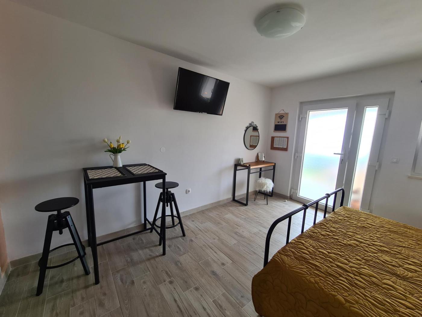 Studio z tarasem i widokiem na morze. The well-fitted kitchenette features a stovetop, a refrigerator and kitchenware. The studio provides air conditioning, a private entrance, a terrace with sea views as well as a private bathroom featuring a shower. The unit offers 3 beds. Studio - 4 osobowy. Powierzchnia pokoju ok.: 24 mkw.