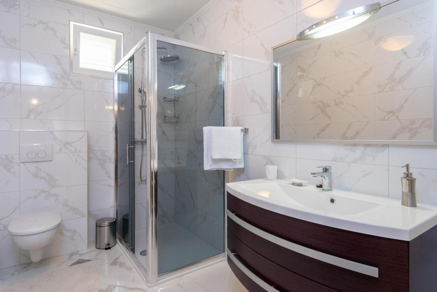 Willa z 3 sypialniami. This villa features a pool with a view and a fireplace. Boasting a private entrance, this air-conditioned villa features 1 living room, 3 separate bedrooms and 3 bathrooms with a shower and a hairdryer. Guests will find a stovetop, a refrigerator, a dishwasher and kitchenware in the fully equipped kitchen. The villa also comes with a barbecue. Featuring a terrace with sea views, this villa also features a washing machine and a flat-screen TV. The unit has 4 beds. Willa - 6 osobowy. Powierzchnia pokoju ok.: 105 mkw.