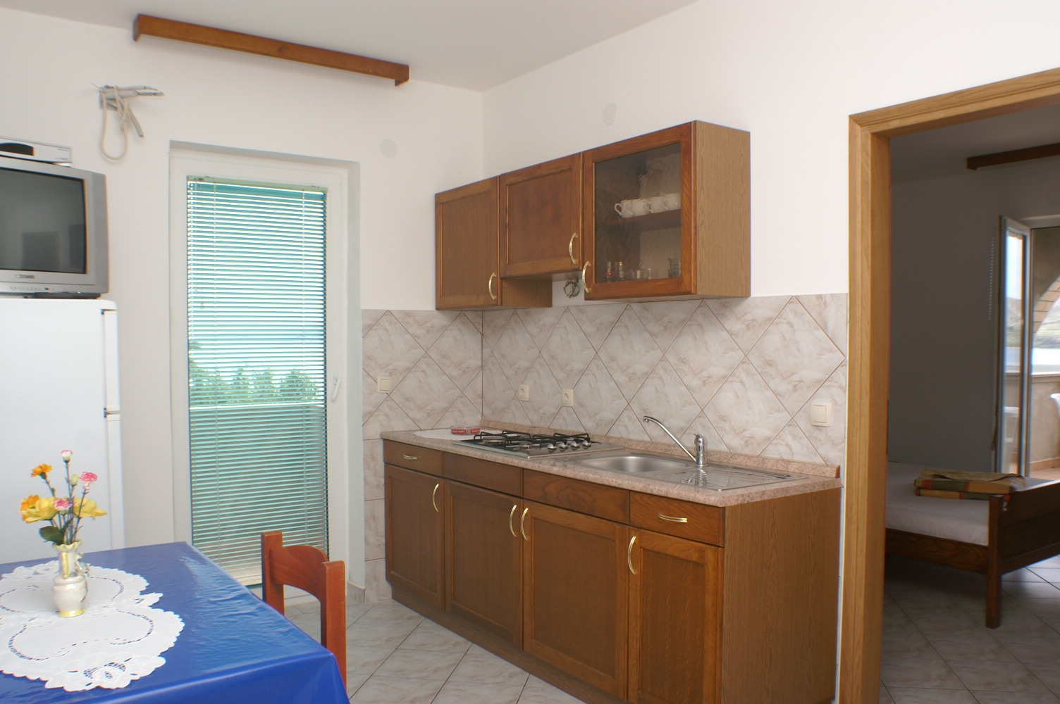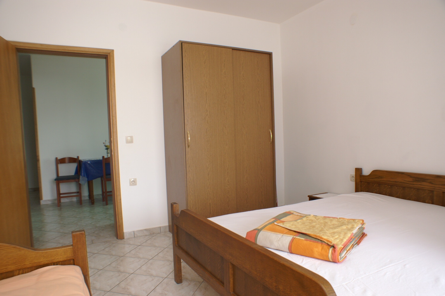 Apartament może przyjąć 4 gości. Łóżka znajdują się w sypialniach, których jest 2, na powierzchni 43m2. Goście mają dostęp do tarasu, by korzystać z ciepłych, letnich wieczorów. Z apartamentu roztacza się widok na morze. Możliwość przygotowywania posiłków poprzez korzystanie ze wspólnego grilla. WLICZONE W CENĘ: taksa pobytowa, sprzątanie końcowe, klimatyzacja, parking, internet, łóżeczko dziecięce, żelazko, deska do prasowania, suszarka do włosów. OBOWIĄZKOWE KOSZTY DODATKOWE: dopłata za krótki termin (procent dopłaty w zalezności od liczby noclegów: 30% - 1, 20% - 2, 10% - 3). NIEOBOWIĄZKOWE KOSZTY DODATKOWE: pranie bielizny (5,00 € pranie). Dostępność dodatkowych usług w rezerwowanym terminie oraz ich cenę (jeśli nie jest podana) należy sprawdzić wcześniej. Za dodatowe usługi, które nie zostały uwzględnione w kalkulacji ceny, płaci się bezpośrednio właścicielowi obiektu, pod warunkiem śe gość korzysta z tych usług.