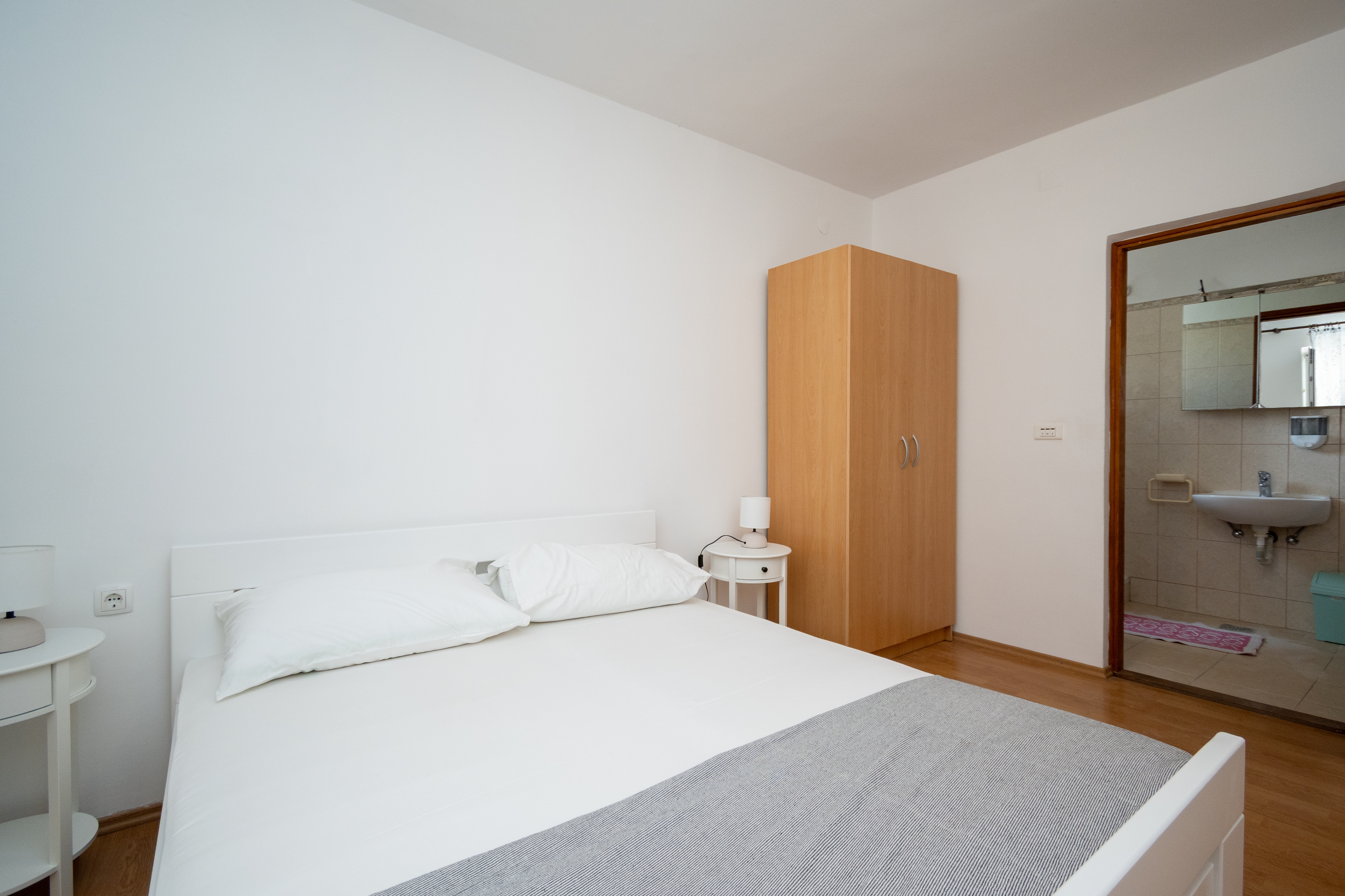 Apartament może przyjąć 4 gości. Łóżka znajdują się w sypialniach, których jest 2, na powierzchni 48m2. Goście mają dostęp do tarasu, by korzystać z ciepłych, letnich wieczorów. Z apartamentu roztacza się widok na morze. Możliwość przygotowywania posiłków poprzez korzystanie ze wspólnego grilla. W trakcie swojego pobytu goście mogą korzystać ze wspólnego basenu. Do kwatery można przyjechać ze zwierzęciem domowym, a usługa jest wliczona w cenę wynajęcia kwatery. W rezerwowanej kwaterze na miejscu jest pobierana kaucja (jej wysokość jest podana na stronie). WLICZONE W CENĘ: taksa pobytowa, sprzątanie końcowe, klimatyzacja, basen, parking, internet, pranie bielizny, zwierzęta domowe, rower, łóżeczko dziecięce, żelazko, deska do prasowania, suszarka do włosów. OBOWIĄZKOWE KOSZTY DODATKOWE: depozyt (200,00 € jednorazowo), dopłata za krótki termin (procent dopłaty w zalezności od liczby noclegów: 30% - 1, 20% - 2, 10% - 3). Dostępność dodatkowych usług w rezerwowanym terminie oraz ich cenę (jeśli nie jest podana) należy sprawdzić wcześniej. Za dodatowe usługi, które nie zostały uwzględnione w kalkulacji ceny, płaci się bezpośrednio właścicielowi obiektu, pod warunkiem śe gość korzysta z tych usług. Zniżki od ceny podstawowej: bezpłatny dzień 21=19 (przy pobycie, trwającym co najmniej 21 dni, trzymujecie dwa bezpłatne dni na pobyt do 31.12.2026).