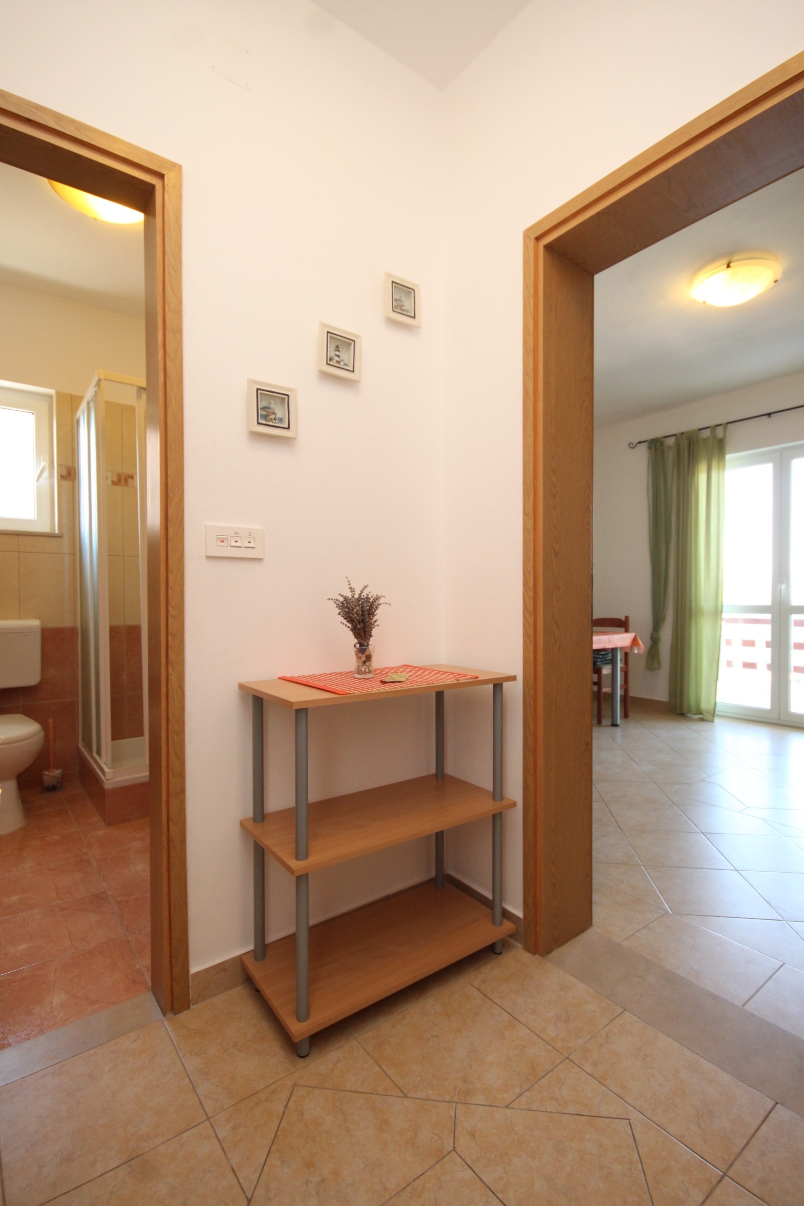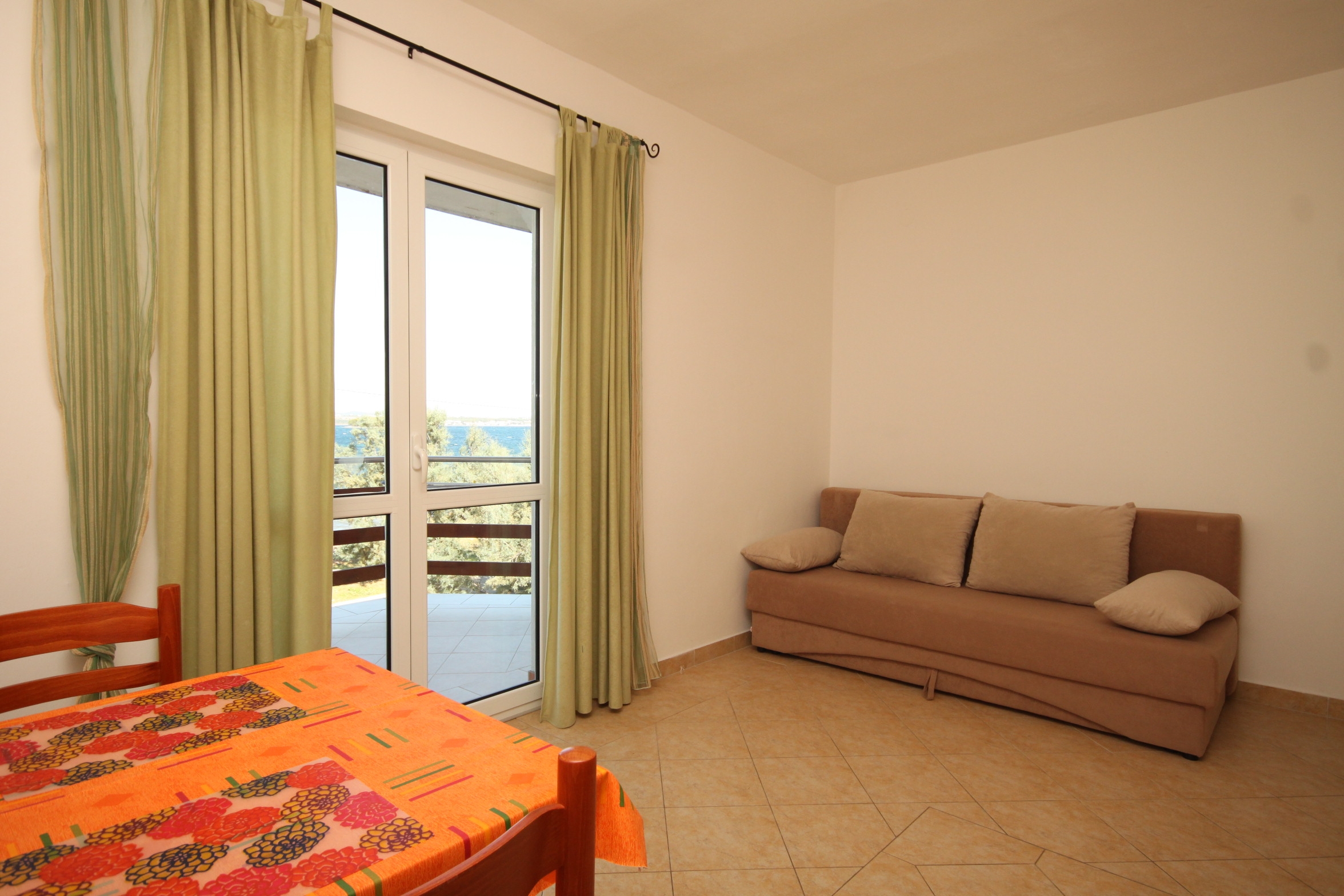 Apartament może przyjąć 4 gości. Łóżka znajdują się w sypialniach, których jest 1, oraz w jadalni, na powierzchni 33m2. Goście mają dostęp do tarasu, by korzystać z ciepłych, letnich wieczorów. Z apartamentu roztacza się widok na morze. Możliwość przygotowywania posiłków poprzez korzystanie ze wspólnego grilla. WLICZONE W CENĘ: taksa pobytowa, sprzątanie końcowe, klimatyzacja, parking, internet. OBOWIĄZKOWE KOSZTY DODATKOWE: dopłata za krótki termin (procent dopłaty w zalezności od liczby noclegów: 30% - 1, 20% - 2, 10% - 3). Dostępność dodatkowych usług w rezerwowanym terminie oraz ich cenę (jeśli nie jest podana) należy sprawdzić wcześniej. Za dodatowe usługi, które nie zostały uwzględnione w kalkulacji ceny, płaci się bezpośrednio właścicielowi obiektu, pod warunkiem śe gość korzysta z tych usług.
