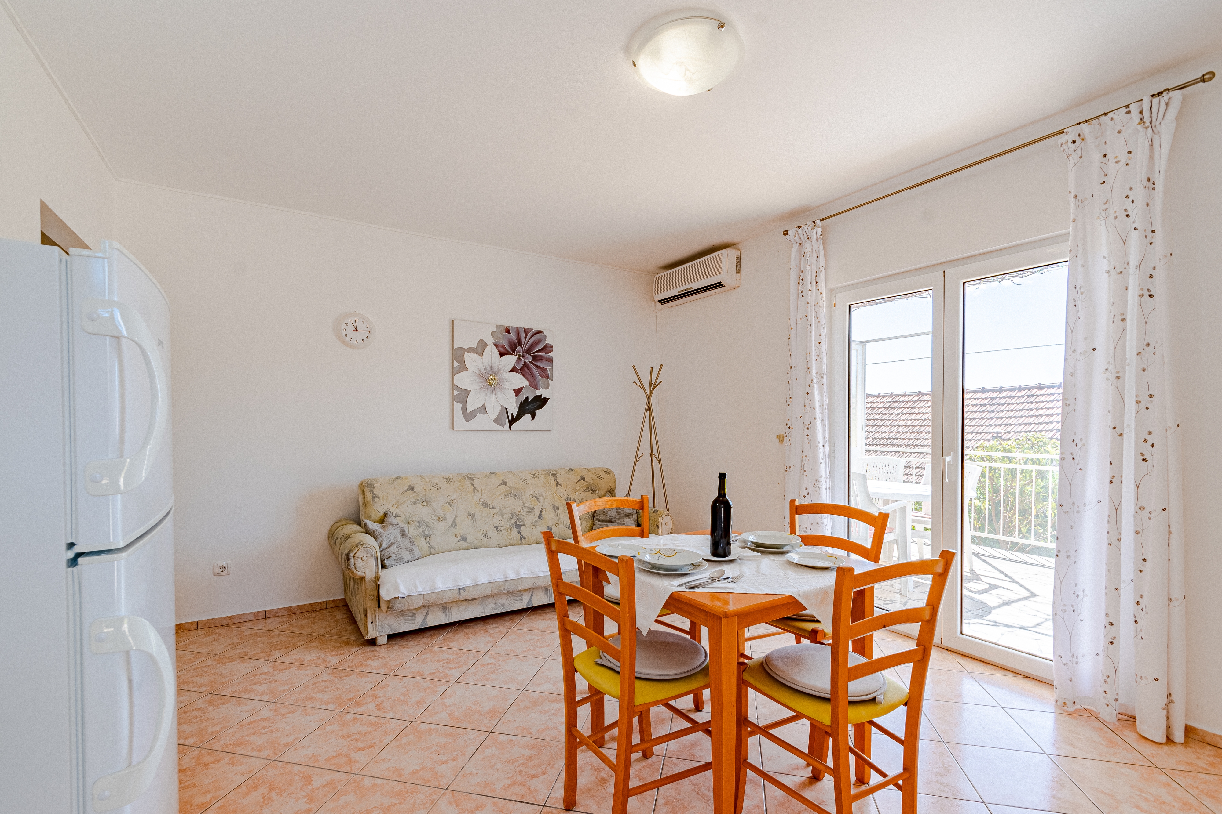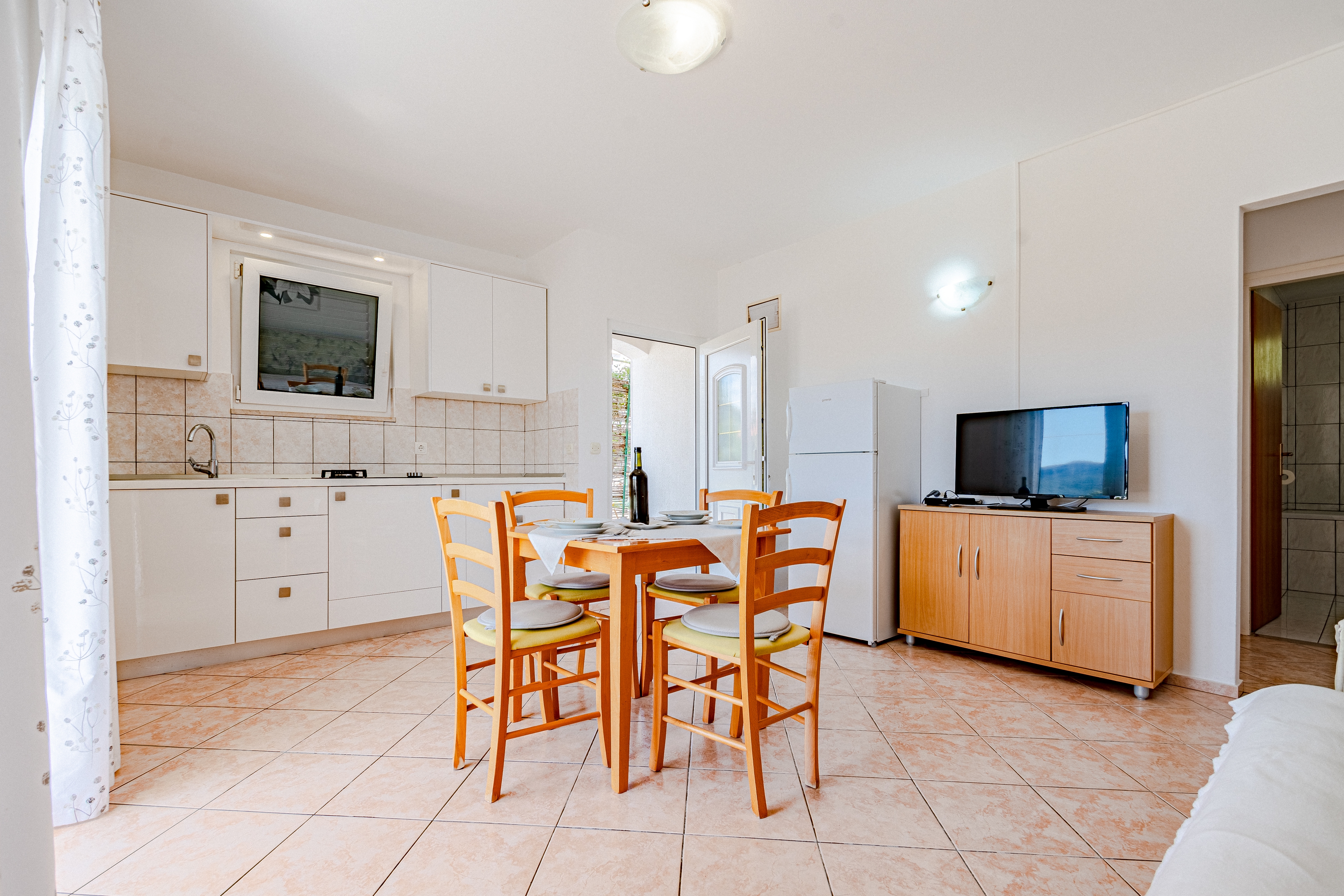 Apartament może przyjąć 3 gości. Łóżka znajdują się w sypialniach, których jest 1, oraz w pokoju dziennym, na powierzchni 37m2. Goście mają dostęp do tarasu, by korzystać z ciepłych, letnich wieczorów. Z apartamentu roztacza się widok na morze. Grill jest dostępny tylko do użytku gości z tej kwatery. Pomieszczenia rezerwowanej kwatery nie są połączone w jedną całość. WLICZONE W CENĘ: taksa pobytowa, sprzątanie końcowe, parking, internet. OBOWIĄZKOWE KOSZTY DODATKOWE: dopłata za krótki termin (procent dopłaty w zalezności od liczby noclegów: 30% - 1, 20% - 2, 10% - 3). NIEOBOWIĄZKOWE KOSZTY DODATKOWE: klimatyzacja (5,00 € za nocleg). Dostępność dodatkowych usług w rezerwowanym terminie oraz ich cenę (jeśli nie jest podana) należy sprawdzić wcześniej. Za dodatowe usługi, które nie zostały uwzględnione w kalkulacji ceny, płaci się bezpośrednio właścicielowi obiektu, pod warunkiem śe gość korzysta z tych usług.