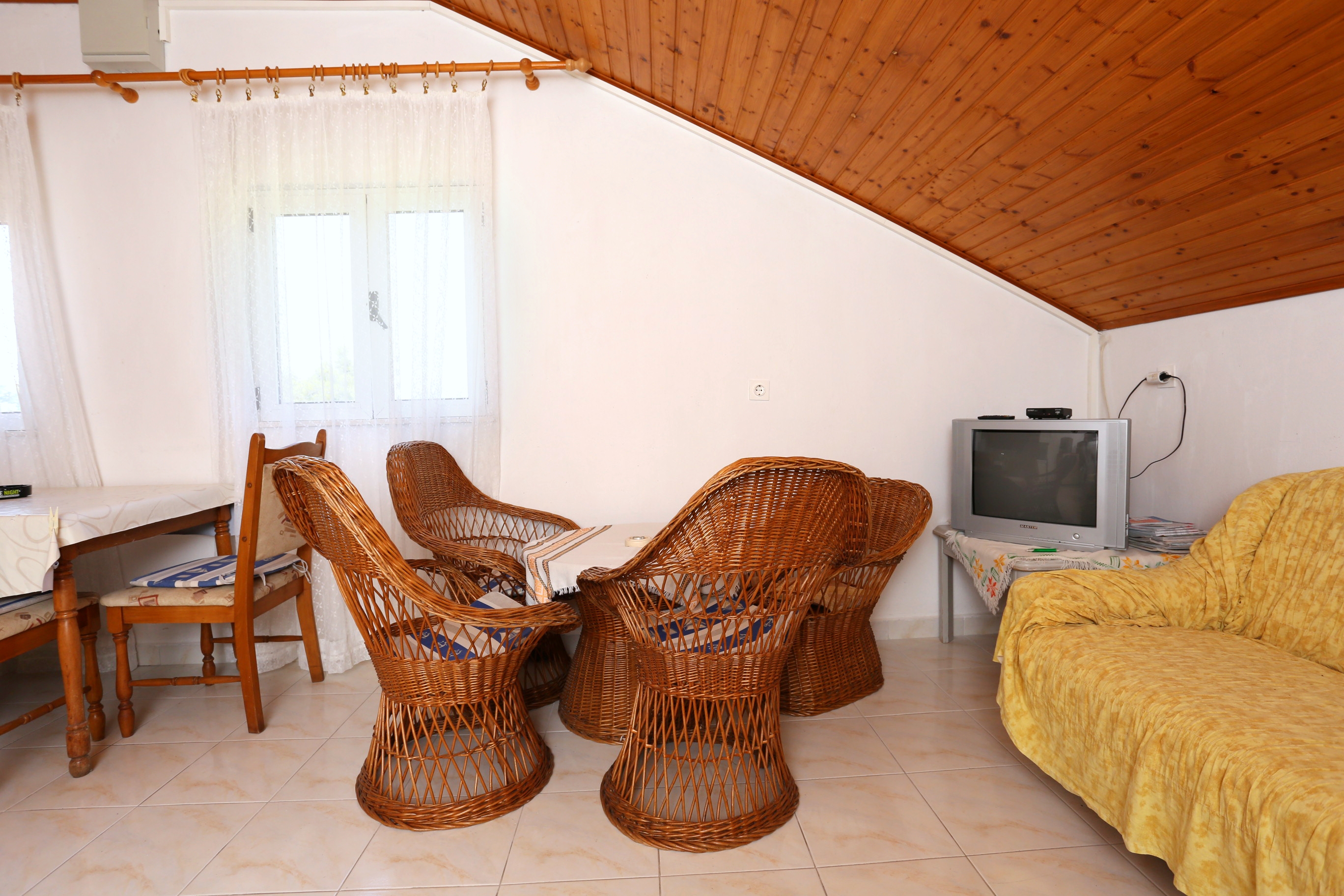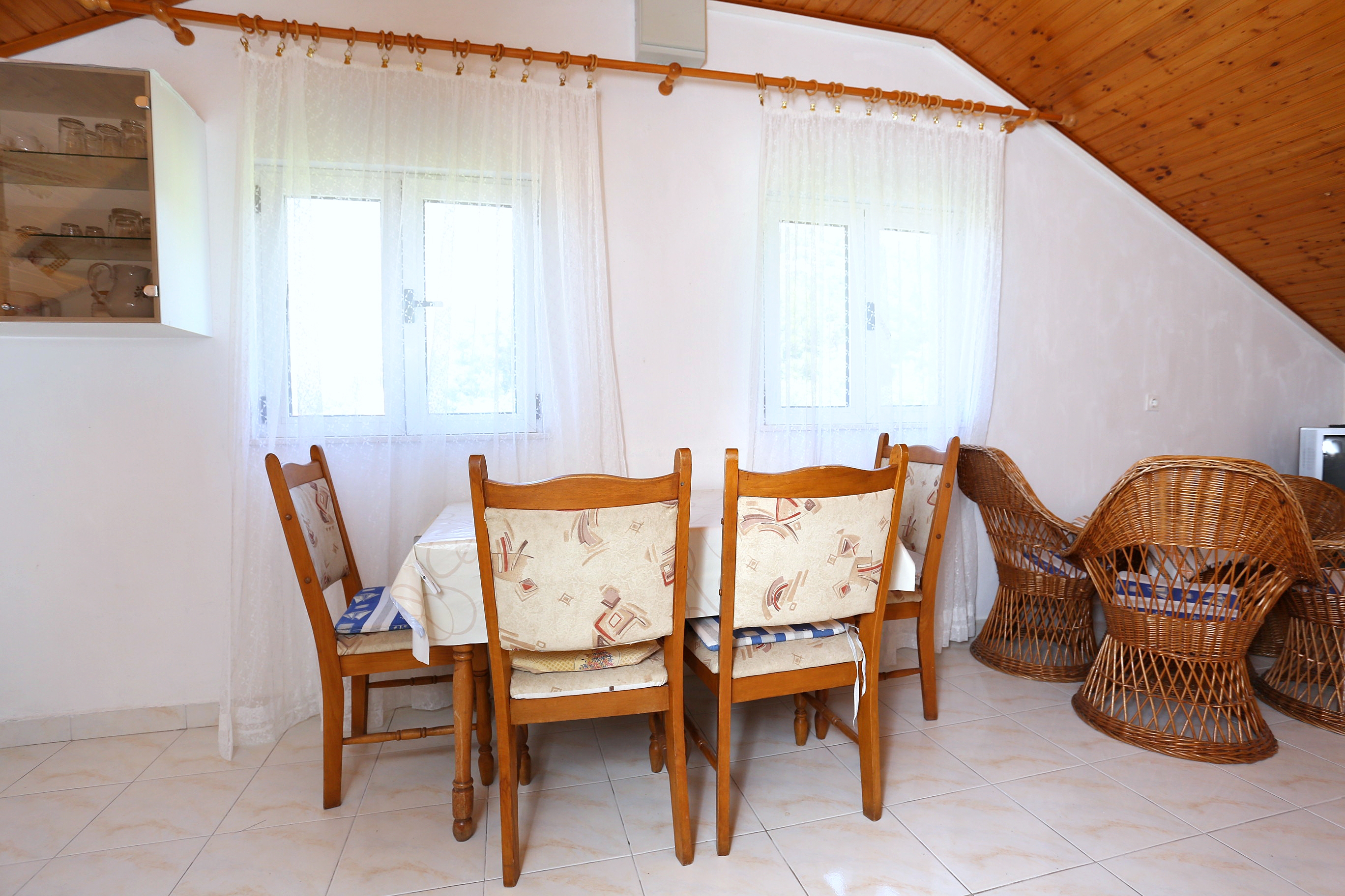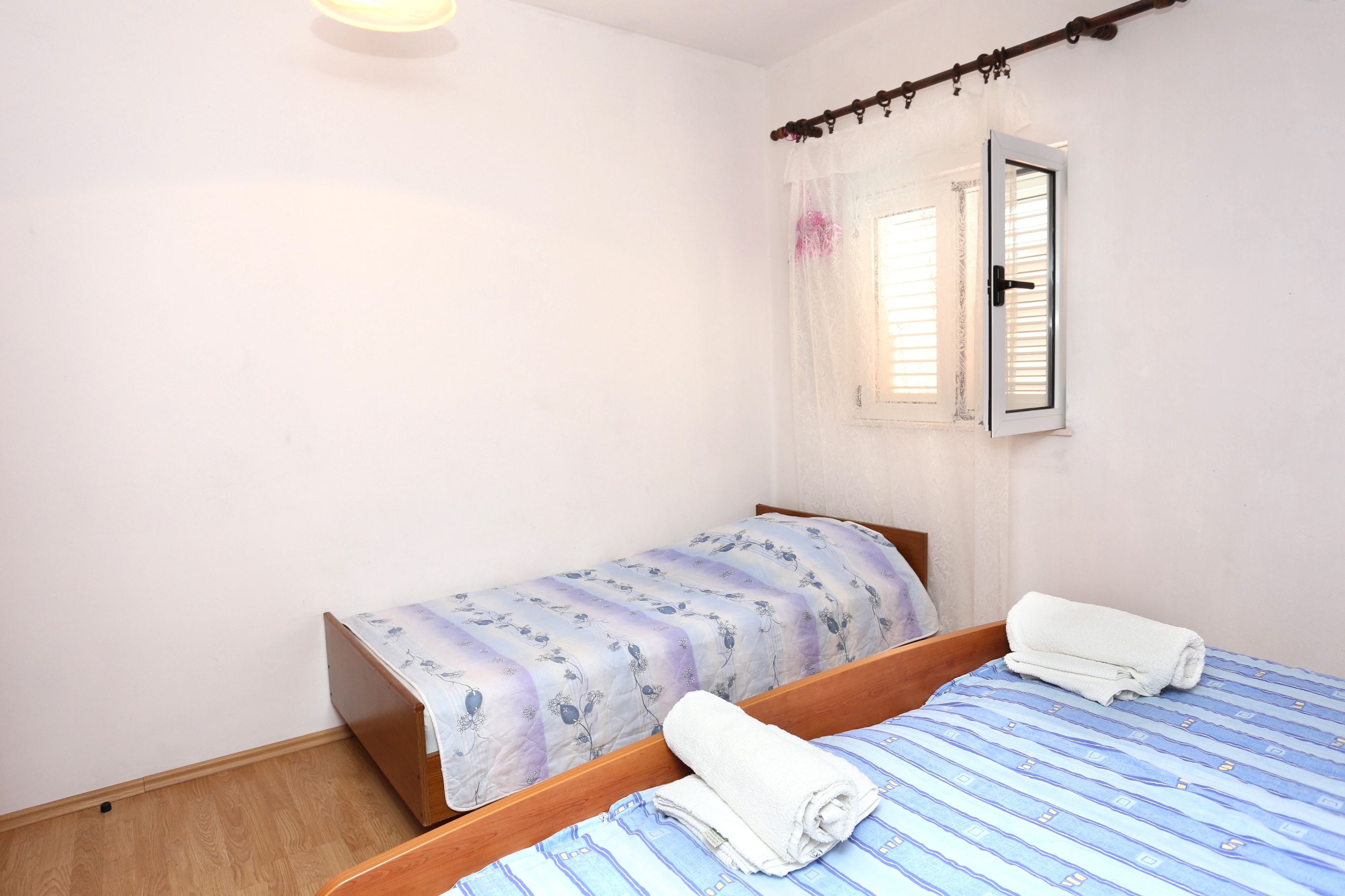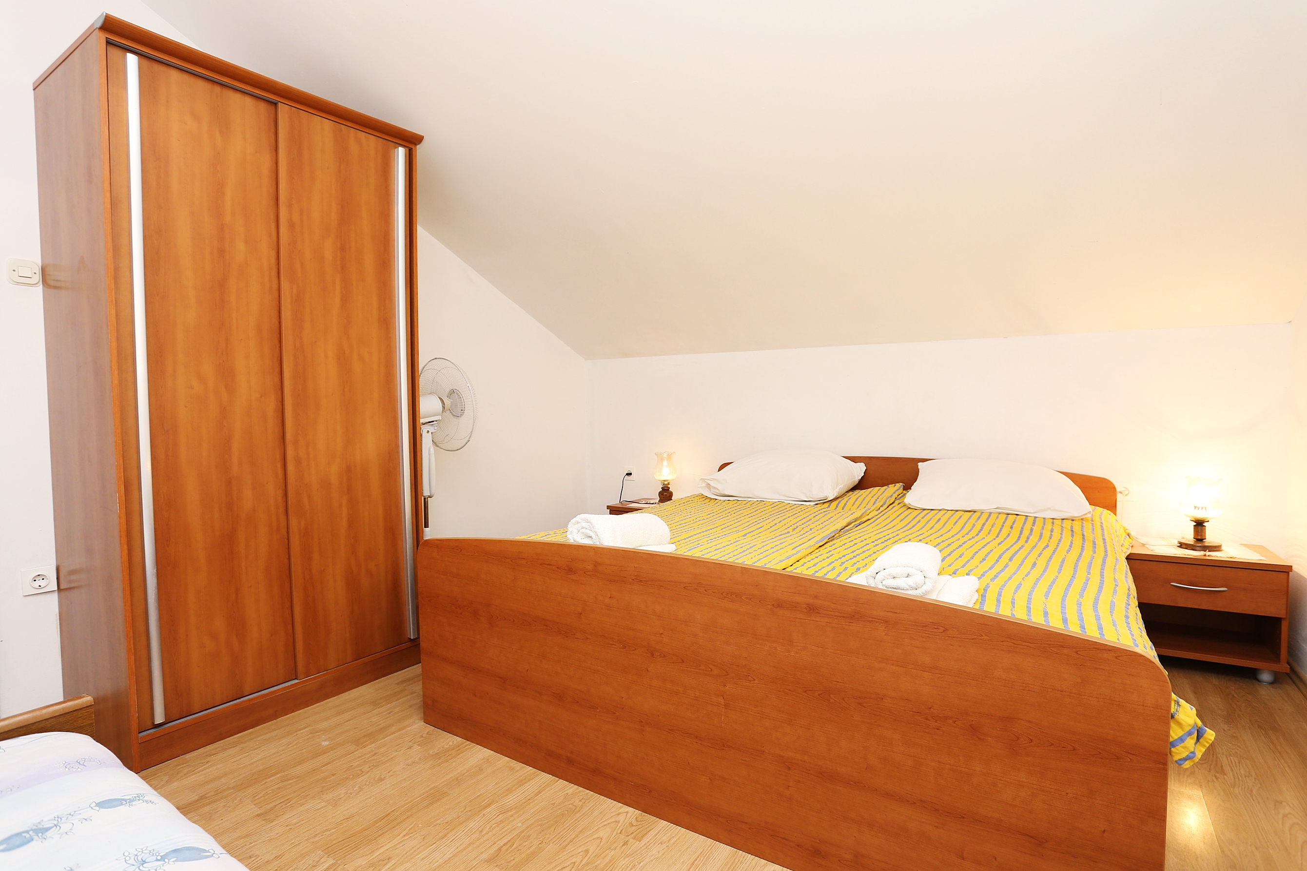 Apartament może przyjąć 6 gości. Łóżka znajdują się w sypialniach, których jest 2, na powierzchni 63m2. Z apartamentu roztacza się widok na morze. Możliwość przygotowywania posiłków poprzez korzystanie ze wspólnego grilla. Rezerwowana kwatera ma taras wspólny z inną kwaterą. WLICZONE W CENĘ: taksa pobytowa, sprzątanie końcowe, parking, internet, żelazko, suszarka do włosów. OBOWIĄZKOWE KOSZTY DODATKOWE: dopłata za krótki termin (procent dopłaty w zalezności od liczby noclegów: 30% - 1, 20% - 2, 10% - 3). NIEOBOWIĄZKOWE KOSZTY DODATKOWE: klimatyzacja (5,00 € za nocleg), pranie bielizny (4,00 € pranie), dostawka (12,00 € za nocleg). Dostępność dodatkowych usług w rezerwowanym terminie oraz ich cenę (jeśli nie jest podana) należy sprawdzić wcześniej. Za dodatowe usługi, które nie zostały uwzględnione w kalkulacji ceny, płaci się bezpośrednio właścicielowi obiektu, pod warunkiem śe gość korzysta z tych usług.