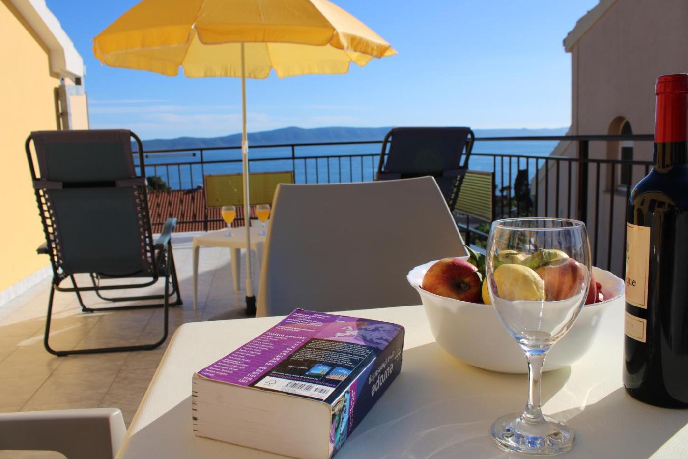 Apartament z 1 sypialnią i widokiem na morze. Apartament ten wyposażony jest w drewniane meble i dysponuje balkonem z widokiem na Morze Adriatyckie. Podłogę wyłożono kafelkami. Goście mają do dyspozycji telewizor z dostępem do kanałów satelitarnych i krajowych oraz kuchnię z jadalnią. Apartament - 4 osobowy. Powierzchnia pokoju ok.: 40 mkw. ;