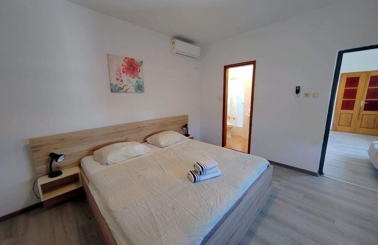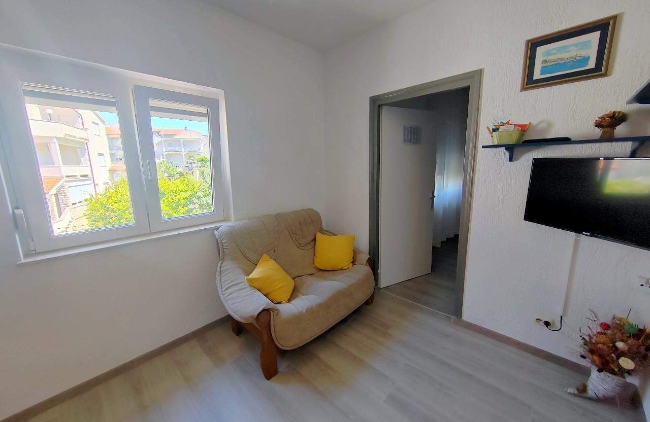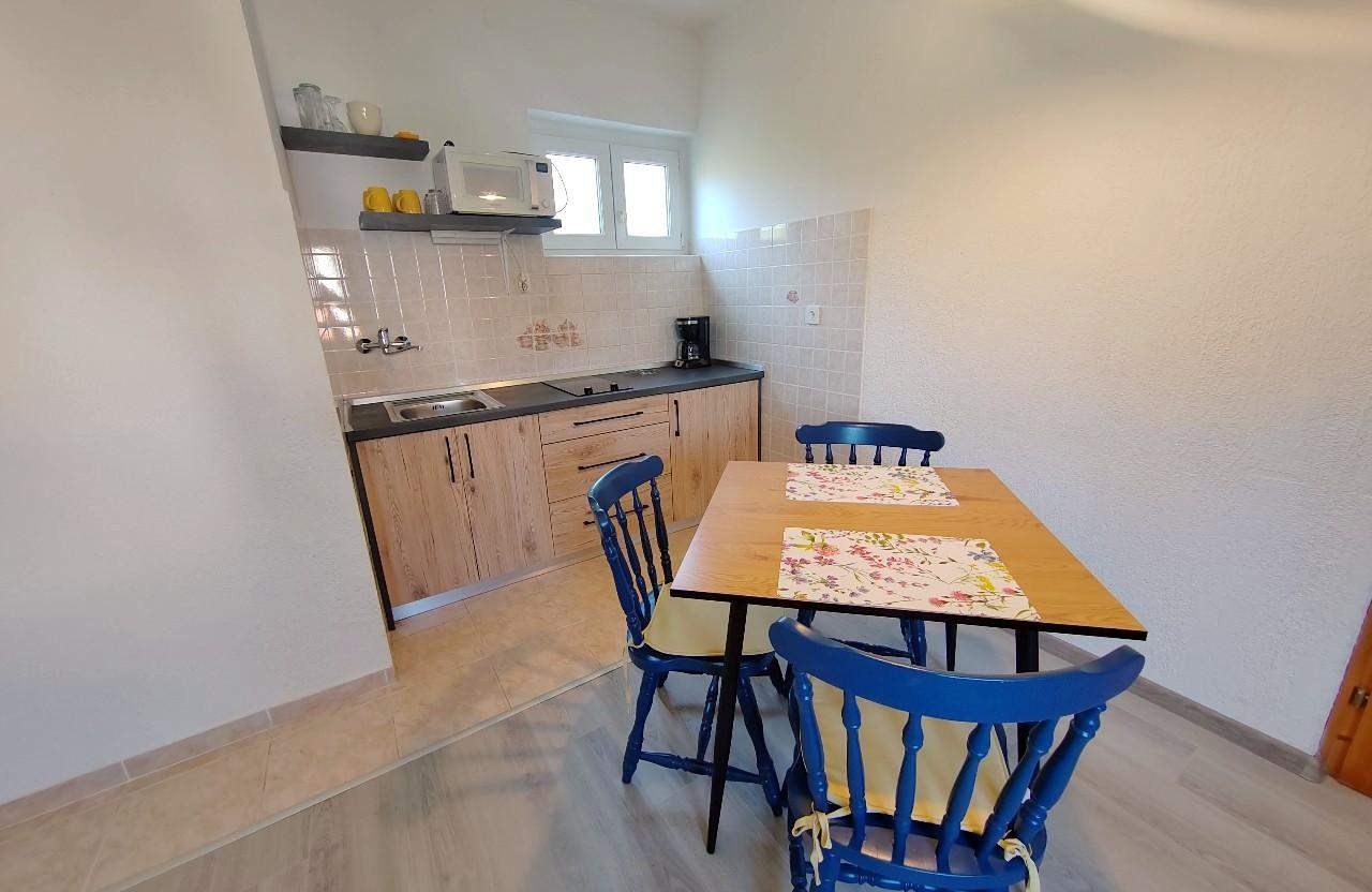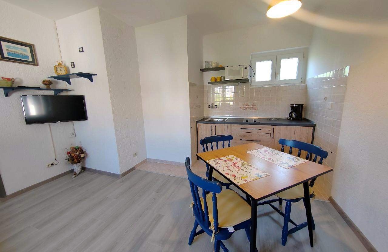 Apartament może przyjąć 2 gości. Łóżka znajdują się w sypialniach, których jest 1, na powierzchni 32m2. Goście mają dostęp do balkonu, by korzystać z ciepłych, letnich wieczorów. Z apartamentu roztacza się widok na morze. Możliwość przygotowywania posiłków poprzez korzystanie ze wspólnego grilla. WLICZONE W CENĘ: taksa pobytowa, sprzątanie końcowe, klimatyzacja, parking, internet. OBOWIĄZKOWE KOSZTY DODATKOWE: dopłata za krótki termin (procent dopłaty w zalezności od liczby noclegów: 30% - 1, 20% - 2, 10% - 3). NIEOBOWIĄZKOWE KOSZTY DODATKOWE: miejsce do cumowania łodzi (10,00 € za nocleg). Dostępność dodatkowych usług w rezerwowanym terminie oraz ich cenę (jeśli nie jest podana) należy sprawdzić wcześniej. Za dodatowe usługi, które nie zostały uwzględnione w kalkulacji ceny, płaci się bezpośrednio właścicielowi obiektu, pod warunkiem śe gość korzysta z tych usług.