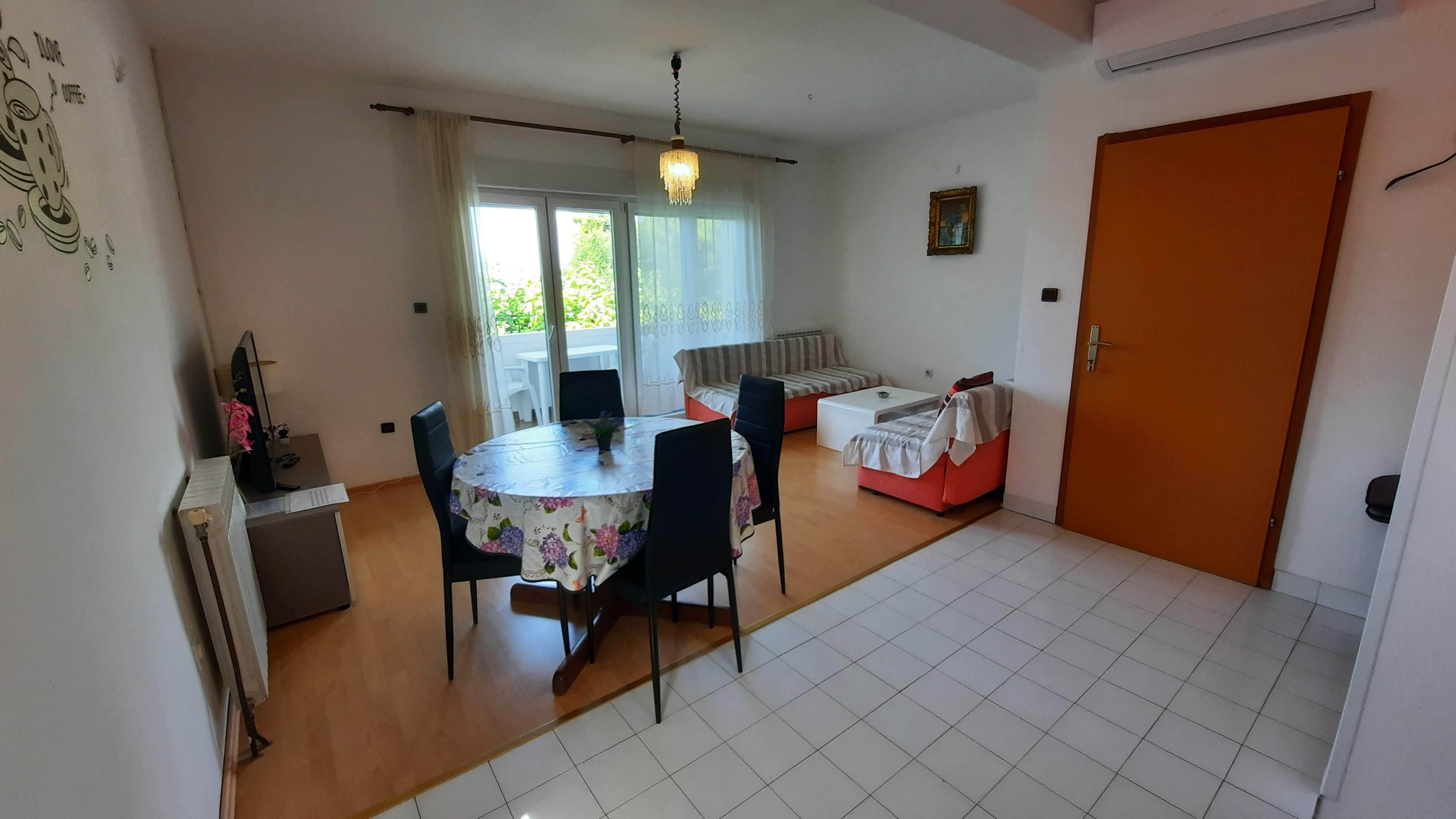 Apartament może przyjąć 4 gości. Łóżka znajdują się w sypialniach, których jest 1, oraz w pokoju dziennym, na powierzchni 44m2. Goście mają dostęp do balkonu, by korzystać z ciepłych, letnich wieczorów. Z apartamentu roztacza się widok na morze. Możliwość przygotowywania posiłków poprzez korzystanie ze wspólnego grilla. WLICZONE W CENĘ: taksa pobytowa, sprzątanie końcowe, klimatyzacja, centralne ogrzewanie, parking, internet, żelazko, deska do prasowania, suszarka do włosów, leżaki. OBOWIĄZKOWE KOSZTY DODATKOWE: dopłata za krótki termin (procent dopłaty w zalezności od liczby noclegów: 30% - 1, 20% - 2, 10% - 3). NIEOBOWIĄZKOWE KOSZTY DODATKOWE: miejsce do cumowania łodzi (10,00 € za nocleg), dostawka (10,00 € za nocleg). Dostępność dodatkowych usług w rezerwowanym terminie oraz ich cenę (jeśli nie jest podana) należy sprawdzić wcześniej. Za dodatowe usługi, które nie zostały uwzględnione w kalkulacji ceny, płaci się bezpośrednio właścicielowi obiektu, pod warunkiem śe gość korzysta z tych usług.