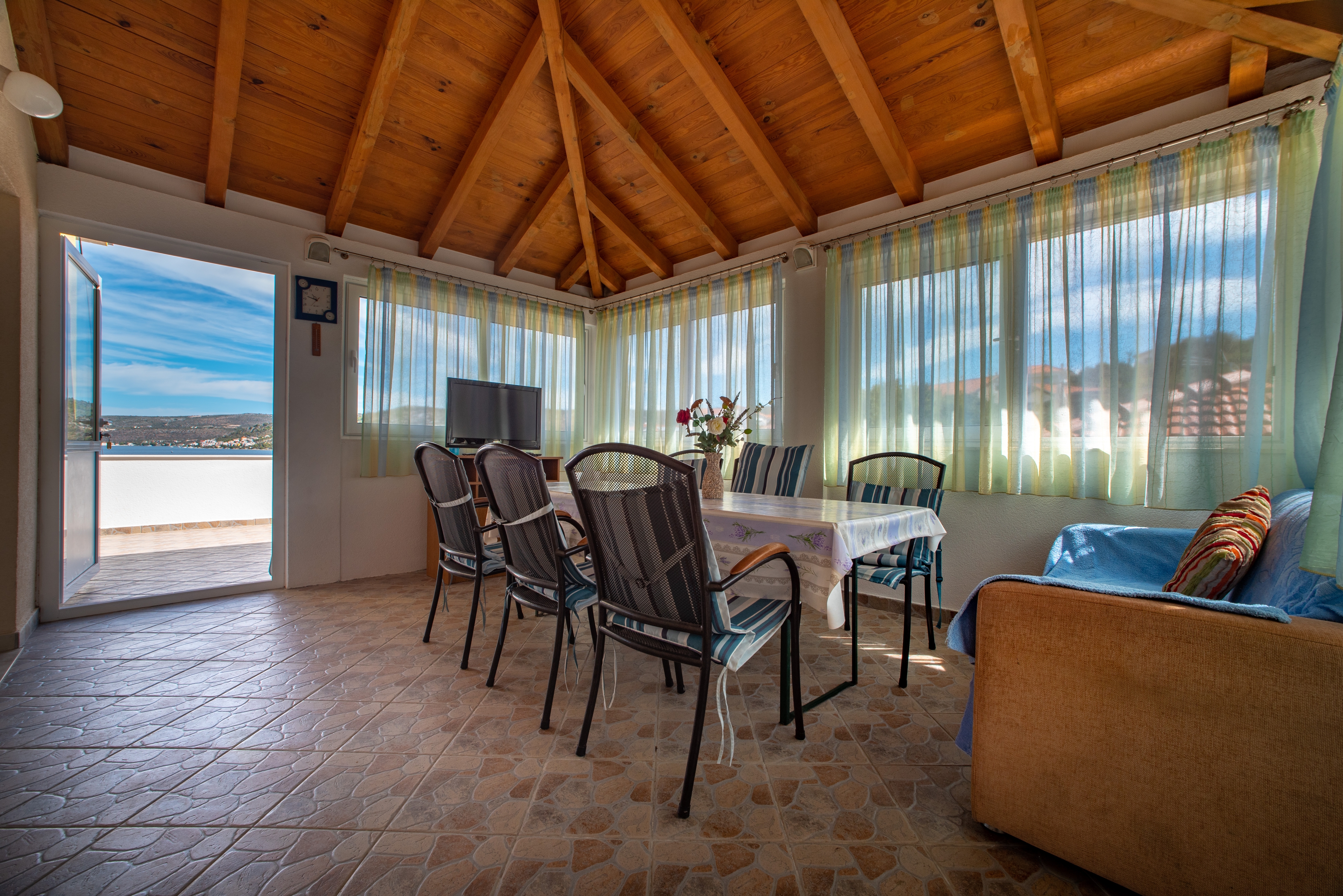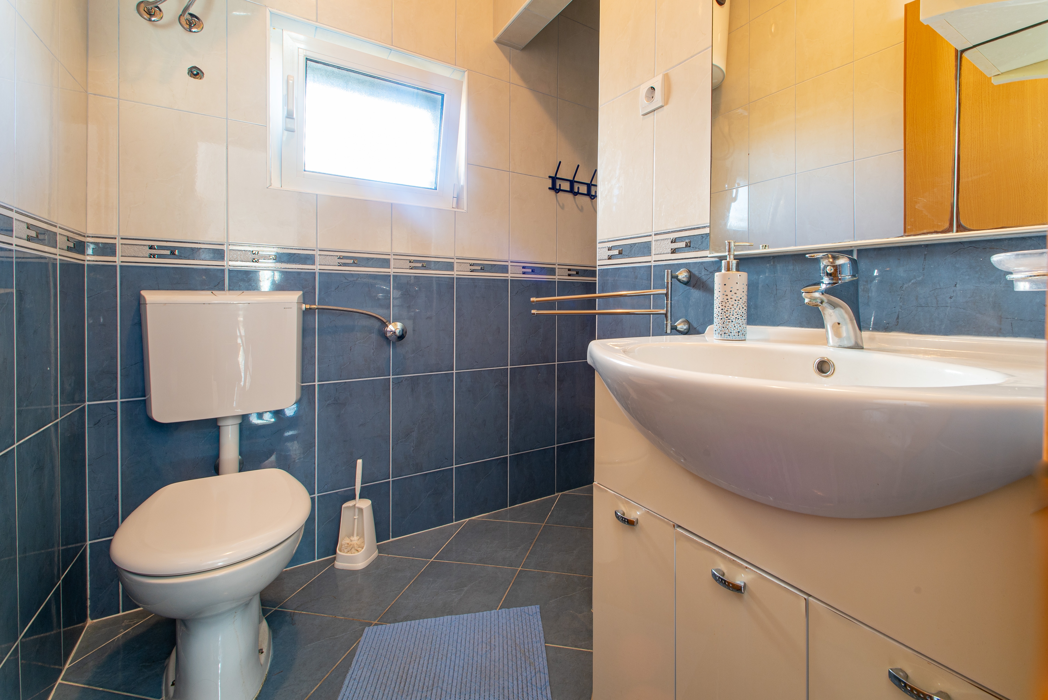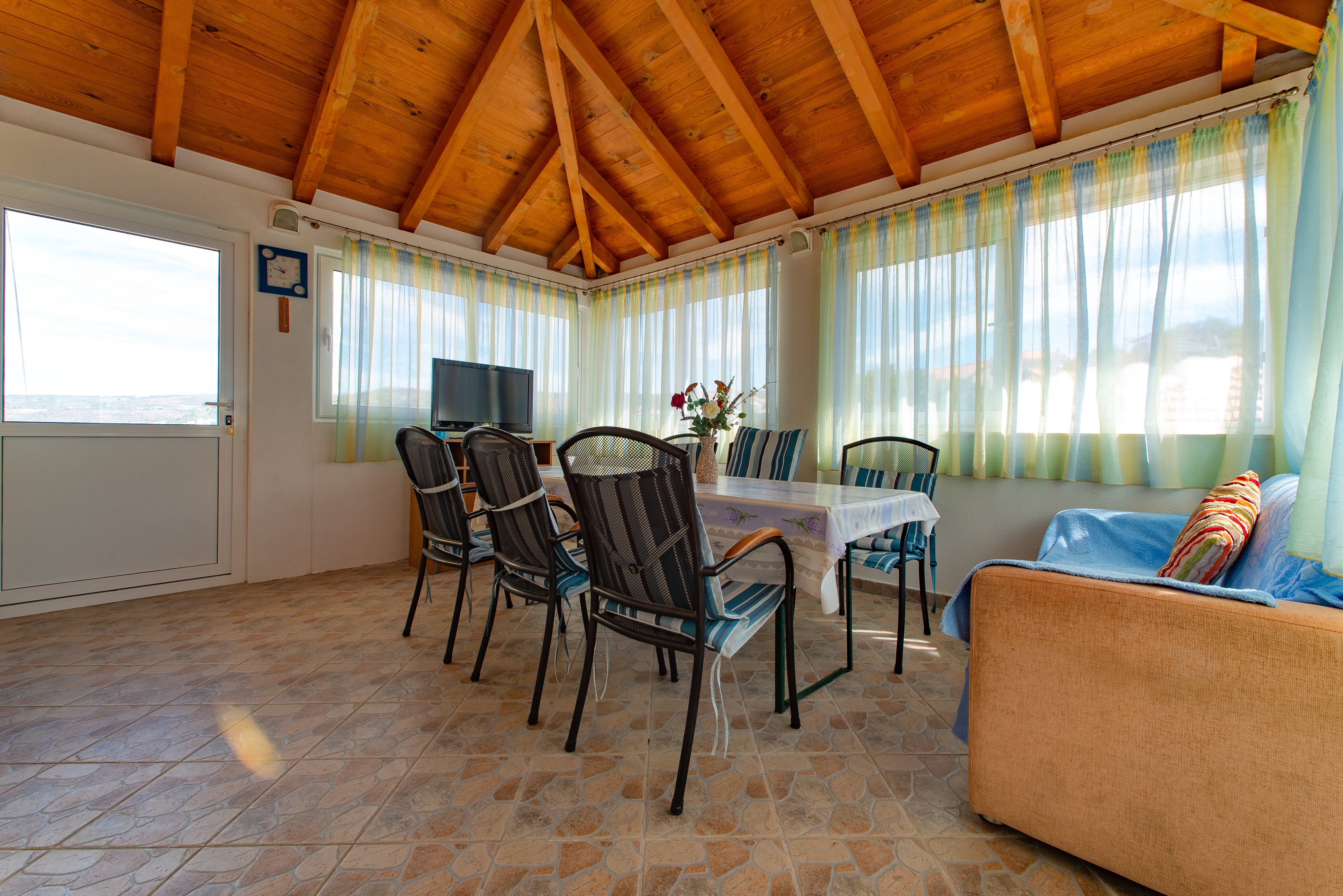 Apartament może przyjąć 4 gości. Łóżka znajdują się w sypialniach, których jest 2, na powierzchni 59m2. Goście mają dostęp do tarasu, by korzystać z ciepłych, letnich wieczorów. Z apartamentu roztacza się widok na morze. Możliwość przygotowywania posiłków poprzez korzystanie ze wspólnego grilla. WLICZONE W CENĘ: taksa pobytowa, sprzątanie końcowe, parking, internet, suszarka do włosów, parasol. OBOWIĄZKOWE KOSZTY DODATKOWE: dopłata za krótki termin (procent dopłaty w zalezności od liczby noclegów: 30% - 1, 20% - 2, 10% - 3). NIEOBOWIĄZKOWE KOSZTY DODATKOWE: klimatyzacja (10,00 € za nocleg), dostawka (20,00 € za nocleg). Dostępność dodatkowych usług w rezerwowanym terminie oraz ich cenę (jeśli nie jest podana) należy sprawdzić wcześniej. Za dodatowe usługi, które nie zostały uwzględnione w kalkulacji ceny, płaci się bezpośrednio właścicielowi obiektu, pod warunkiem śe gość korzysta z tych usług.