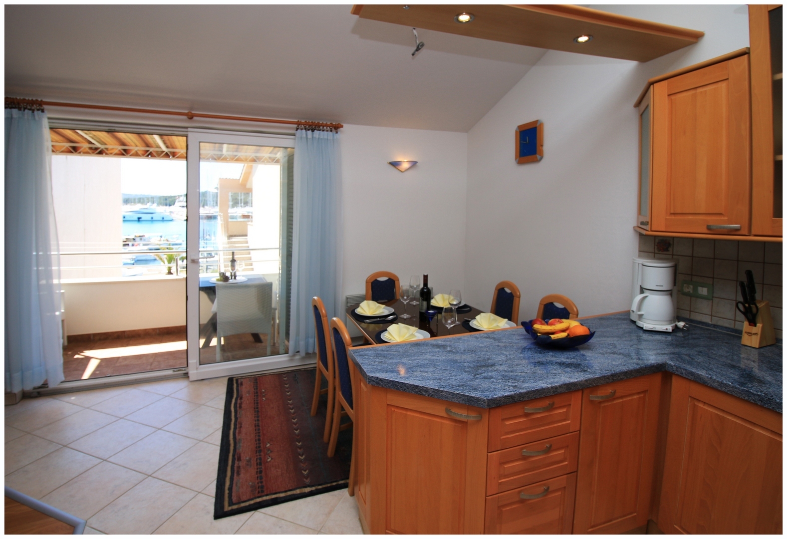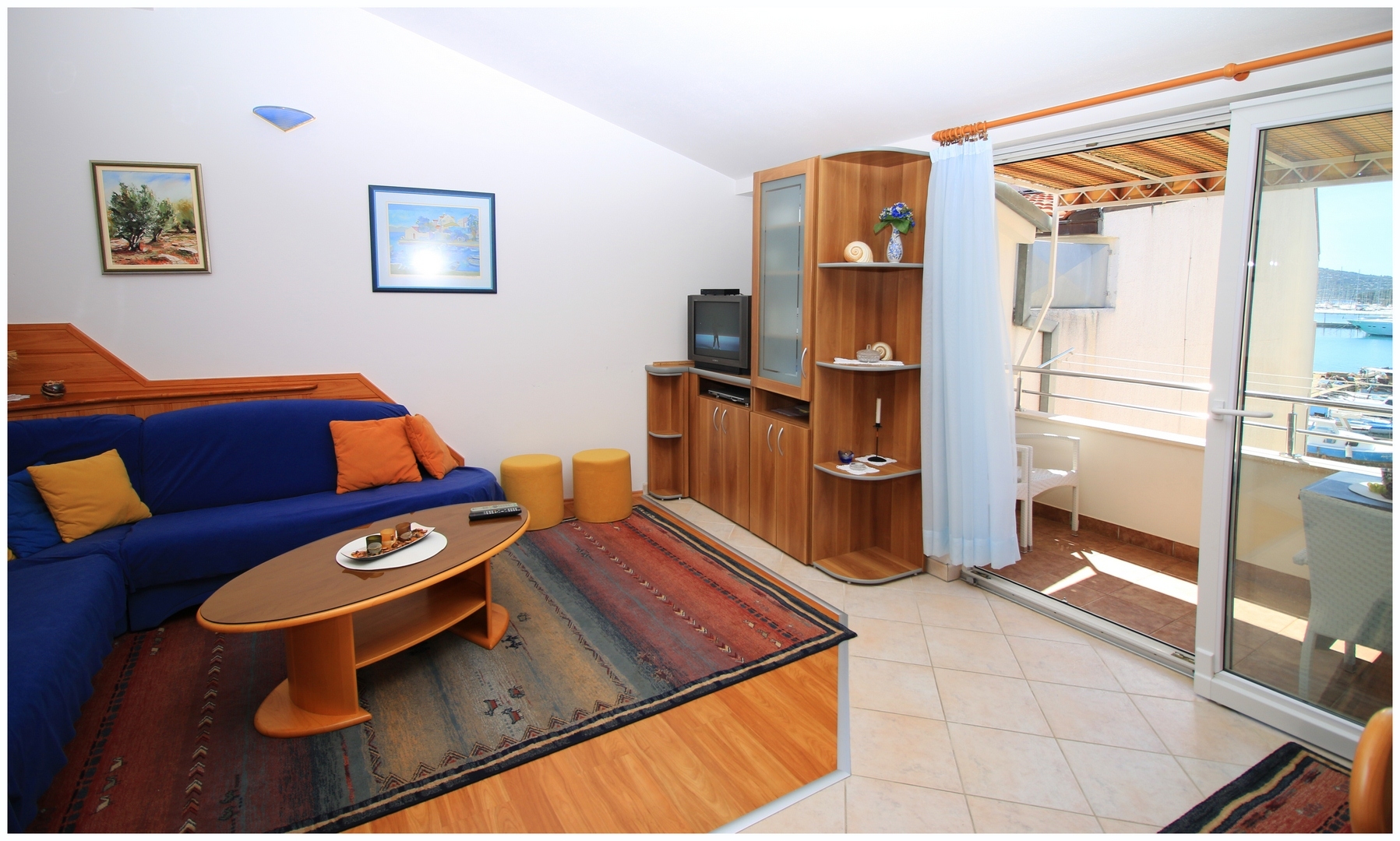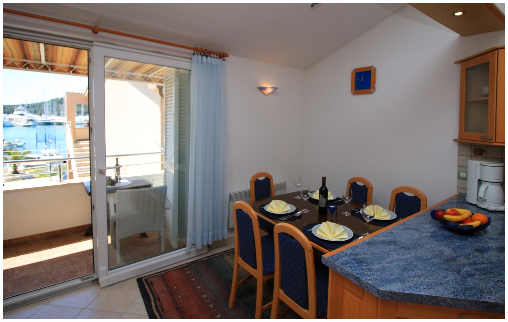 Apartament może przyjąć 2 gości. Łóżka znajdują się w sypialniach, których jest 1, na powierzchni 45m2. Goście mają dostęp do balkonu, by korzystać z ciepłych, letnich wieczorów. Z apartamentu roztacza się widok na morze. Możliwość przygotowywania posiłków poprzez korzystanie ze wspólnego grilla. WLICZONE W CENĘ: taksa pobytowa, sprzątanie końcowe, klimatyzacja, parking, internet, łóżeczko dziecięce, żelazko, deska do prasowania, suszarka do włosów. NIEOBOWIĄZKOWE KOSZTY DODATKOWE: pranie bielizny (10,00 € pranie), łódź (50,00 € za nocleg), miejsce do cumowania łodzi (10,00 € za nocleg), rower (5,00 € za dzień (za sztukę)), 1 łóżeczko dziecięce (5,00 € osobadzień). Dostępność dodatkowych usług w rezerwowanym terminie oraz ich cenę (jeśli nie jest podana) należy sprawdzić wcześniej. Za dodatowe usługi, które nie zostały uwzględnione w kalkulacji ceny, płaci się bezpośrednio właścicielowi obiektu, pod warunkiem śe gość korzysta z tych usług.
