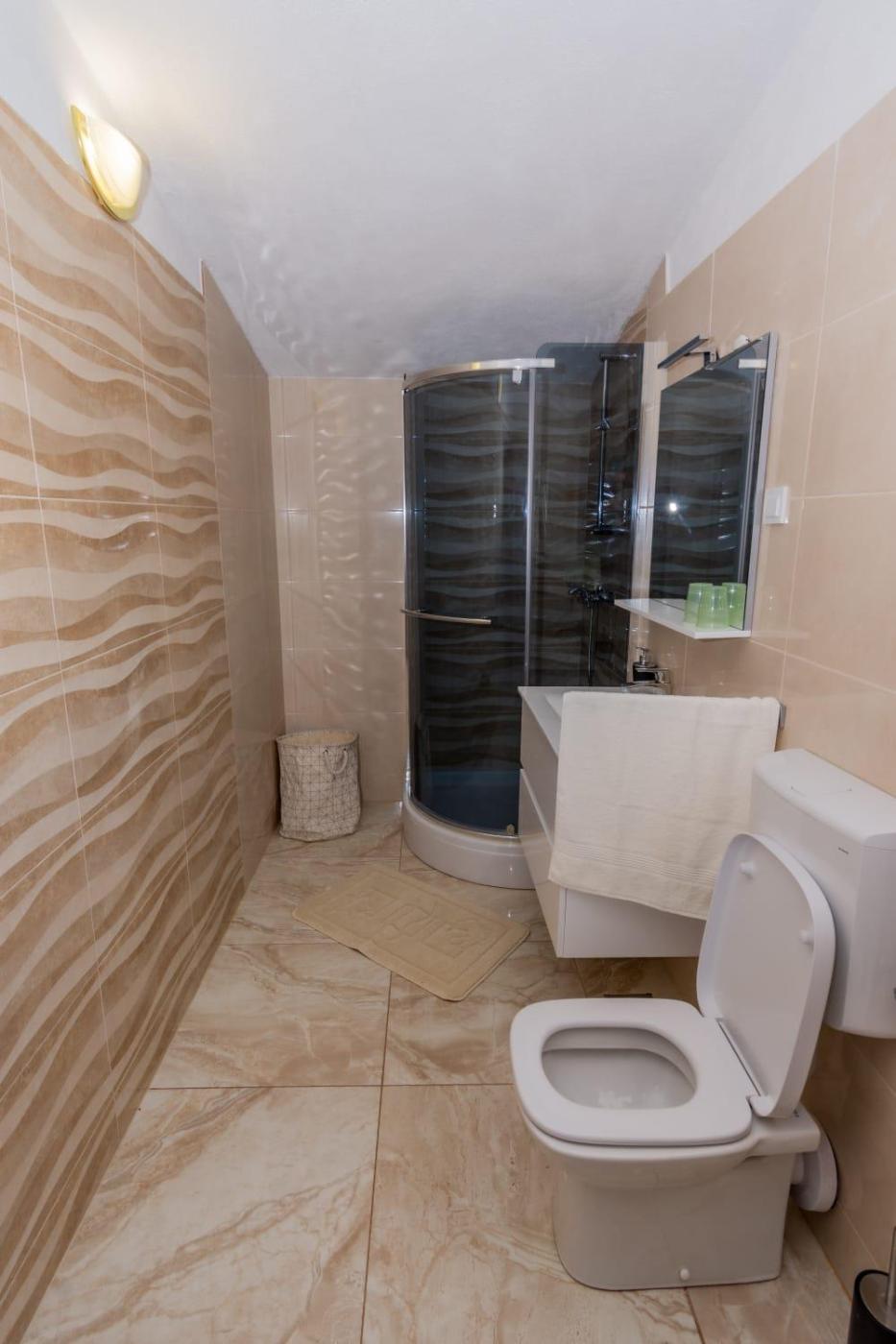 Apartament z widokiem na morze. Featuring a private entrance, this air-conditioned apartment consists of 1 living room, 2 separate bedrooms and 1 bathroom with a bath or a shower and a bidet. Guests will find a stovetop, a refrigerator, kitchenware and an oven in the well-equipped kitchen. The apartment also offers a barbecue. The spacious apartment provides a flat-screen TV with satellite channels, a washing machine, a coffee machine, a seating area as well as sea views. The unit offers 4 beds. Apartament - 5 osobowy. Powierzchnia pokoju ok.: 70 mkw.