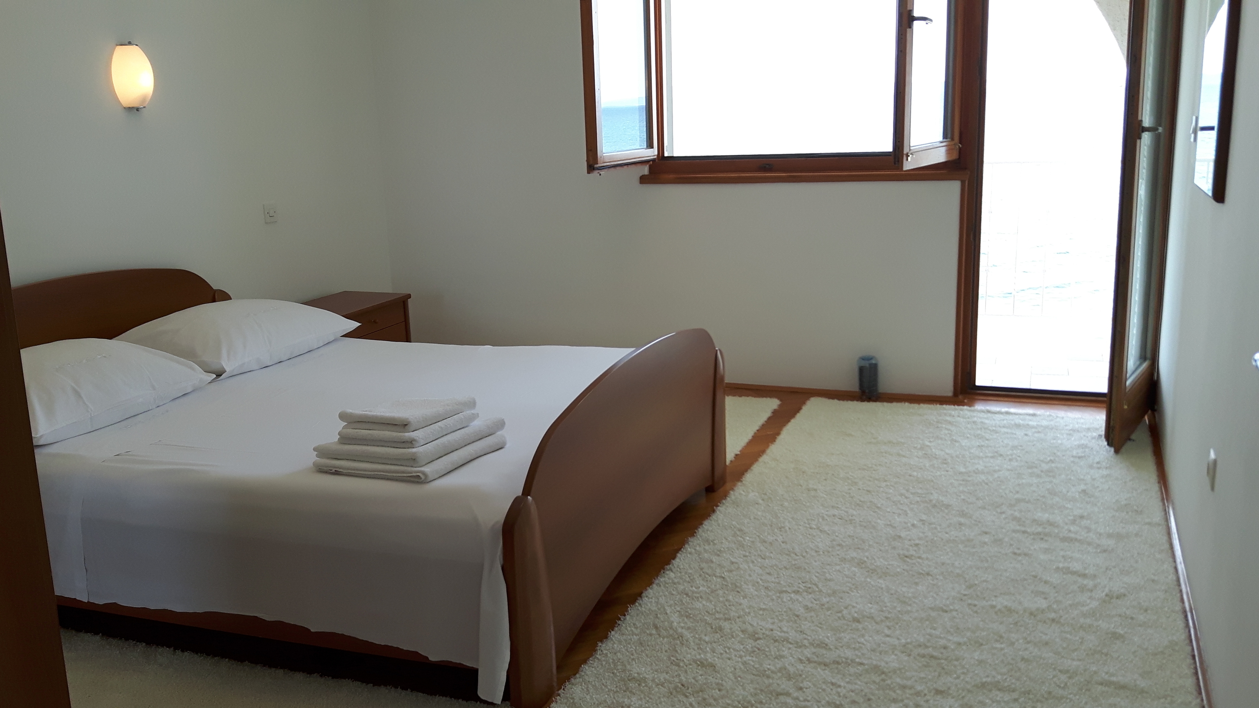 Apartament może przyjąć 4 gości. Łóżka znajdują się w sypialniach, których jest 2, na powierzchni 51m2. Goście mają dostęp do balkonu, by korzystać z ciepłych, letnich wieczorów. Z apartamentu roztacza się widok na morze. WLICZONE W CENĘ: taksa pobytowa, sprzątanie końcowe, klimatyzacja, parking, internet, żelazko, suszarka do włosów, parasol, leżaki. Dostępność dodatkowych usług w rezerwowanym terminie oraz ich cenę (jeśli nie jest podana) należy sprawdzić wcześniej. Za dodatowe usługi, które nie zostały uwzględnione w kalkulacji ceny, płaci się bezpośrednio właścicielowi obiektu, pod warunkiem śe gość korzysta z tych usług. Zniżki od ceny podstawowej: bezpłatny dzień 21=19 (przy pobycie, trwającym co najmniej 21 dni, trzymujecie dwa bezpłatne dni na pobyt do 31.12.2026).