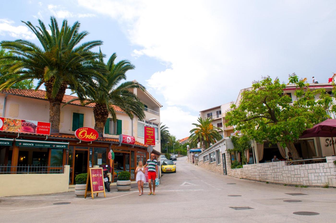 W oddalonym o 7 km centrum Splitu podziwiać można wpisany na Listę Światowego Dziedzictwa UNESCO Pałac Dioklecjana. Znajduje się tam również główny dworzec autobusowy i port promowy. Odległość od lotniska w Splicie wynosi 22 km.
