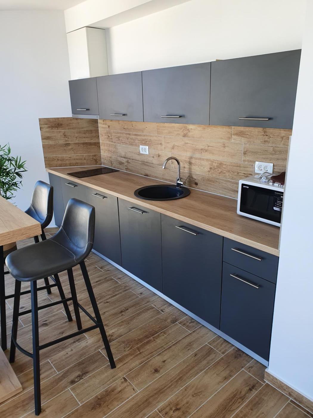 Apartament z 1 sypialnią i balkonem – Parter. Featuring a private entrance, this air-conditioned apartment comprises 1 living room, 1 separate bedroom and 1 bathroom with a walk-in shower and a hairdryer. The well-equipped kitchen features a refrigerator, a dishwasher, kitchenware and a microwave. Boasting a terrace with sea views, this apartment also provides a dining area and a flat-screen TV with satellite channels. The unit offers 2 beds. Apartament - 4 osobowy. Powierzchnia pokoju ok.: 50 mkw. ;