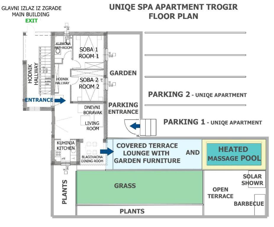 Obiekt UNIQUE Trogir - garden with PRIVATE heated massage POOL ONLY FOR YOU położony jest w miejscowości Trogir i oferuje sezonowy odkryty basen, ogród oraz prywatną plażę. Na miejscu zapewniono też bezpłatne Wi-Fi, a Goście mogą podziwiać widok na basen. W okolicy apartamentu panują doskonałe warunki do uprawiania trekkingu, wędkarstwa i nurkowania z rurką. Na miejscu dostępny jest bezpłatny prywatny parking.
