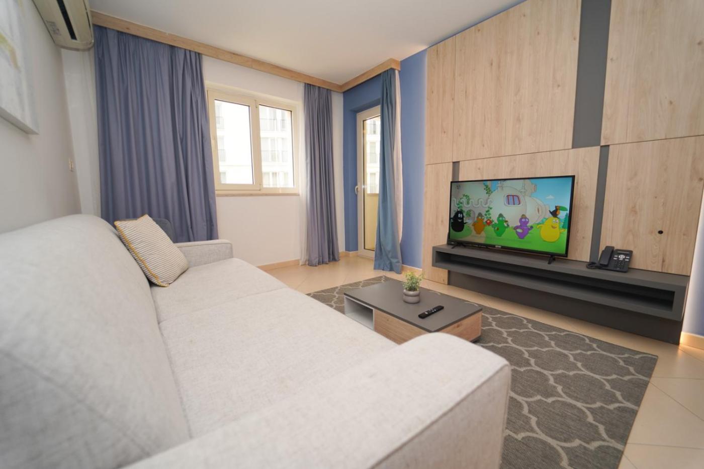 W apartamencie z 2 sypialniami zapewniono klimatyzację oraz salon. Wyposażenie obejmuje też telewizor z dostępem do kanałów satelitarnych. Wyposażenie kuchni obejmuje lodówkę, zmywarkę, piekarnik, a także ekspres do kawy i czajnik.