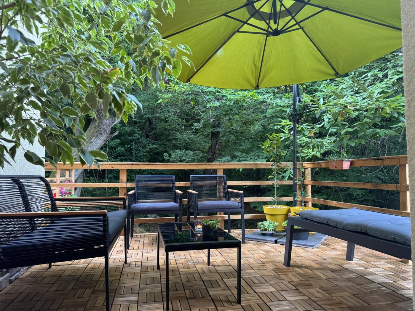 W apartamencie zapewniono taras, kilka sypialni (2), salon z telewizorem z płaskim ekranem, kuchnię ze standardowym wyposażeniem, takim jak lodówka i zmywarka, a także łazienkę (1) z prysznicem. Goście mogą podziwiać widok na ogród. W apartamencie zapewniono ręczniki i pościel.