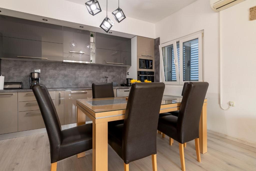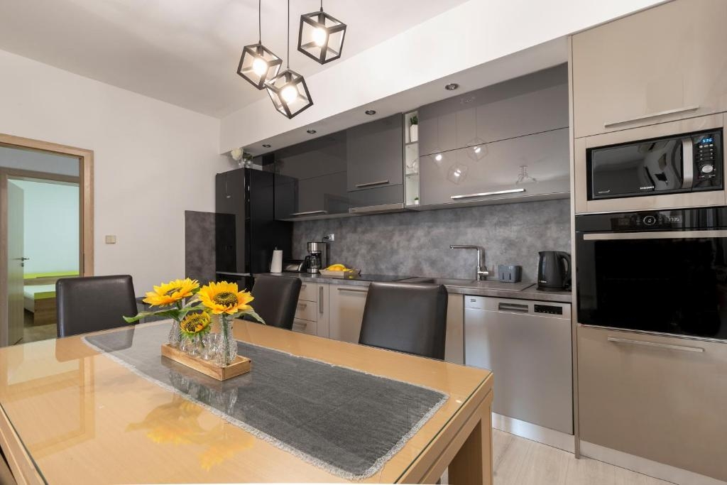Apartament może przyjąć 5 gości. Łóżka znajdują się w sypialniach, których jest 2, oraz w pokoju dziennym, na powierzchni 80m2. Goście mają dostęp do tarasu, by korzystać z ciepłych, letnich wieczorów. Z apartamentu roztacza się widok na morze. Możliwość przygotowywania posiłków poprzez korzystanie ze wspólnego grilla. Pomieszczenia rezerwowanej kwatery nie są połączone w jedną całość. WLICZONE W CENĘ: taksa pobytowa, sprzątanie końcowe, klimatyzacja, parking, internet, suszarka do włosów. Dostępność dodatkowych usług w rezerwowanym terminie oraz ich cenę (jeśli nie jest podana) należy sprawdzić wcześniej. Za dodatowe usługi, które nie zostały uwzględnione w kalkulacji ceny, płaci się bezpośrednio właścicielowi obiektu, pod warunkiem śe gość korzysta z tych usług. Zniżki od ceny podstawowej: bezpłatny dzień 21=19 (przy pobycie, trwającym co najmniej 21 dni, trzymujecie dwa bezpłatne dni na pobyt do 31.12.2026).