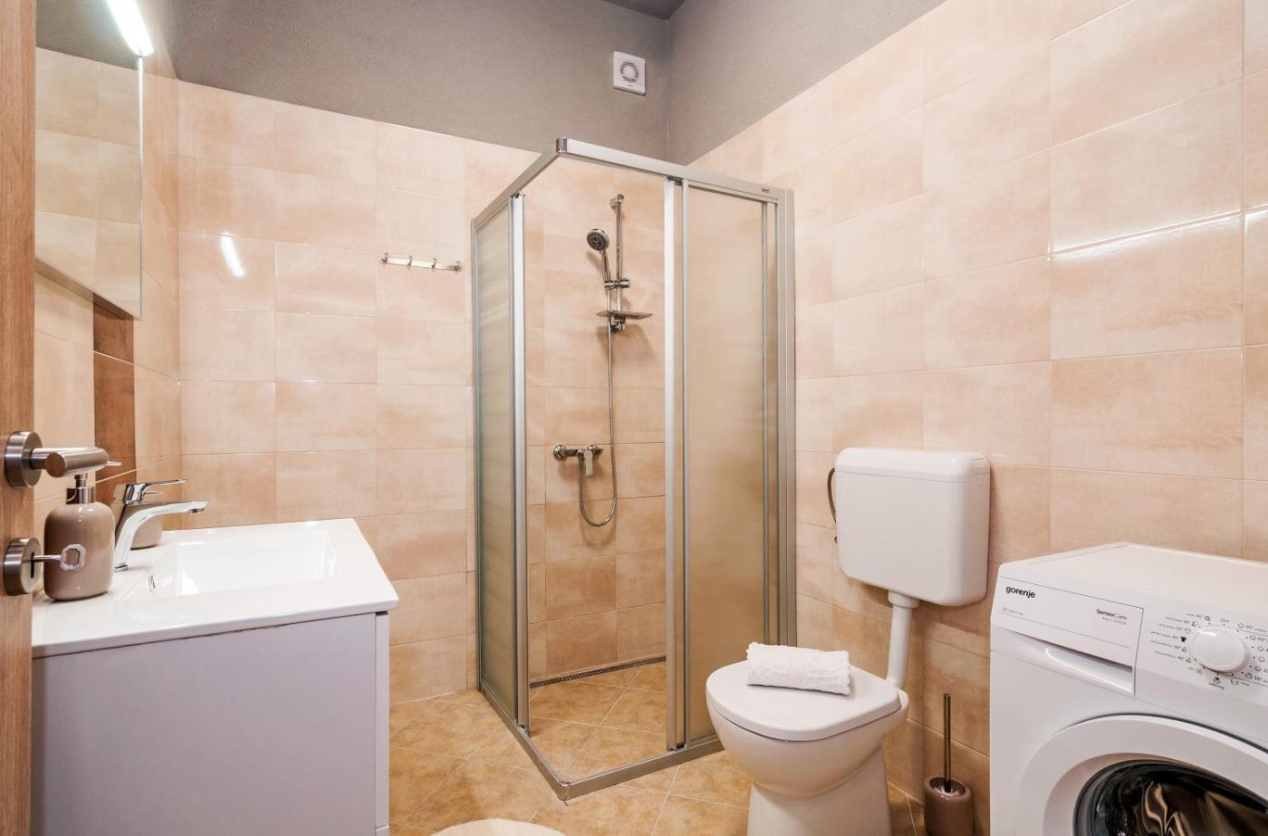 Apartament – parter. Boasting a private entrance, this air-conditioned apartment features 1 living room, 1 separate bedroom and 1 bathroom with a shower and a hairdryer. Guests will find a stovetop, a refrigerator, kitchenware and an oven in the well-equipped kitchen. The apartment also comes with a barbecue. Featuring a terrace with ancourtyard view, this apartment also features a washing machine and a flat-screen TV. The unit has 2 beds. Apartament - 4 osobowy. Powierzchnia pokoju ok.: 35 mkw.